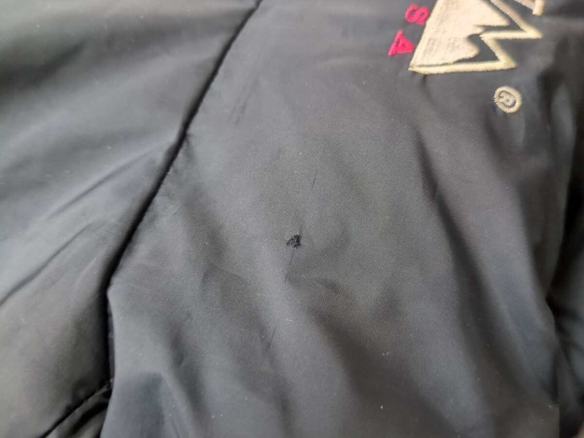 | 正規品です。 【肩幅】61 【着丈】102 【身幅】65 【袖丈】57 【ウエスト】 【総丈】 【股下】 【裾幅】 グレー面 襟周り、裾に色褪せ、使用感あり。フロント中央に点穴。 黒面 襟に軽い擦れ。バック肩やポケット口にアタリ、テカリ。 |