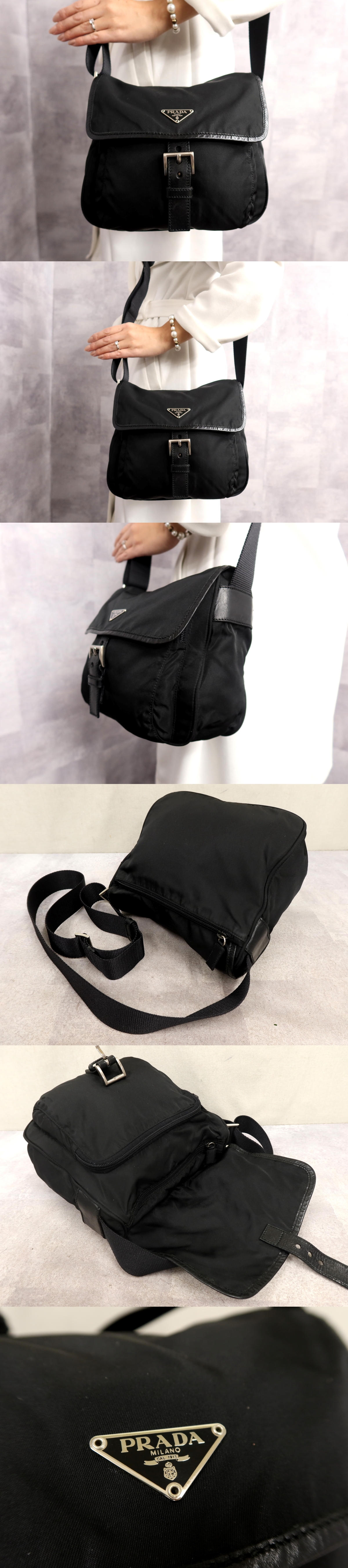●超美品●PRADA プラダ●三角ロゴプレート●ポコノ ナイロン カーフ レザー 本革●ショルダー バッグ●黒●SV金具●イタリア製●Js63270