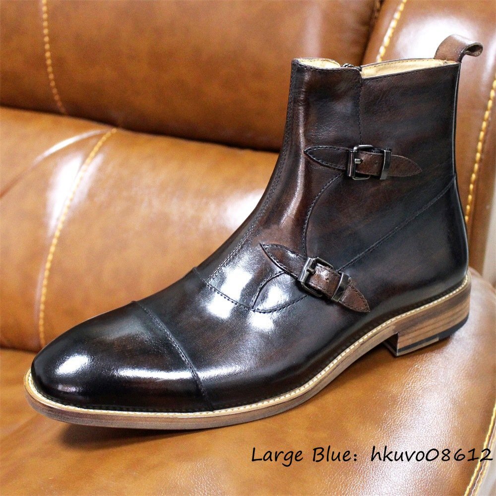 定価12万■ショートブーツ 最高級エンジニアブーツ マーティンブーツ 牛革ビジネスシューズ 職人手作り 本革 レザーブーツ 珈琲色 27.5cm