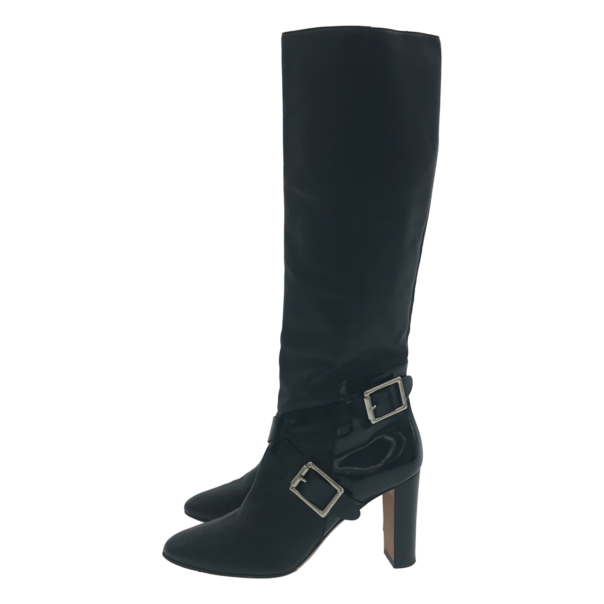 パテントストラップレザーヒールブーツ