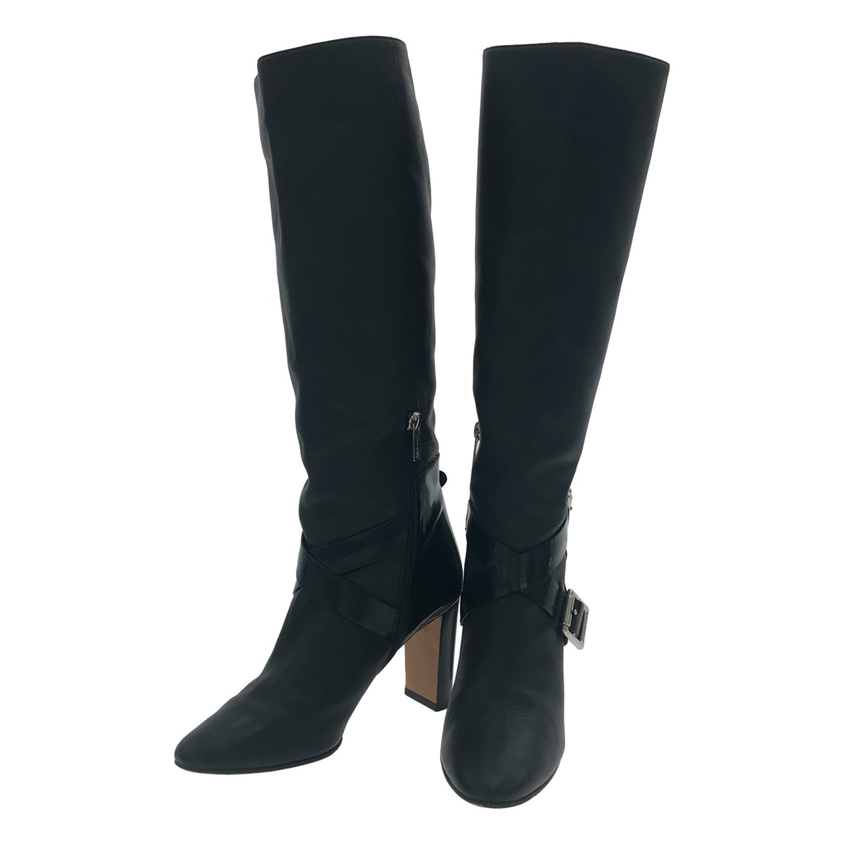 JIMMY CHOO ジミー チュウ パテントストラップレザーヒールブーツ ブラック 38 ITVG1O33JO6K