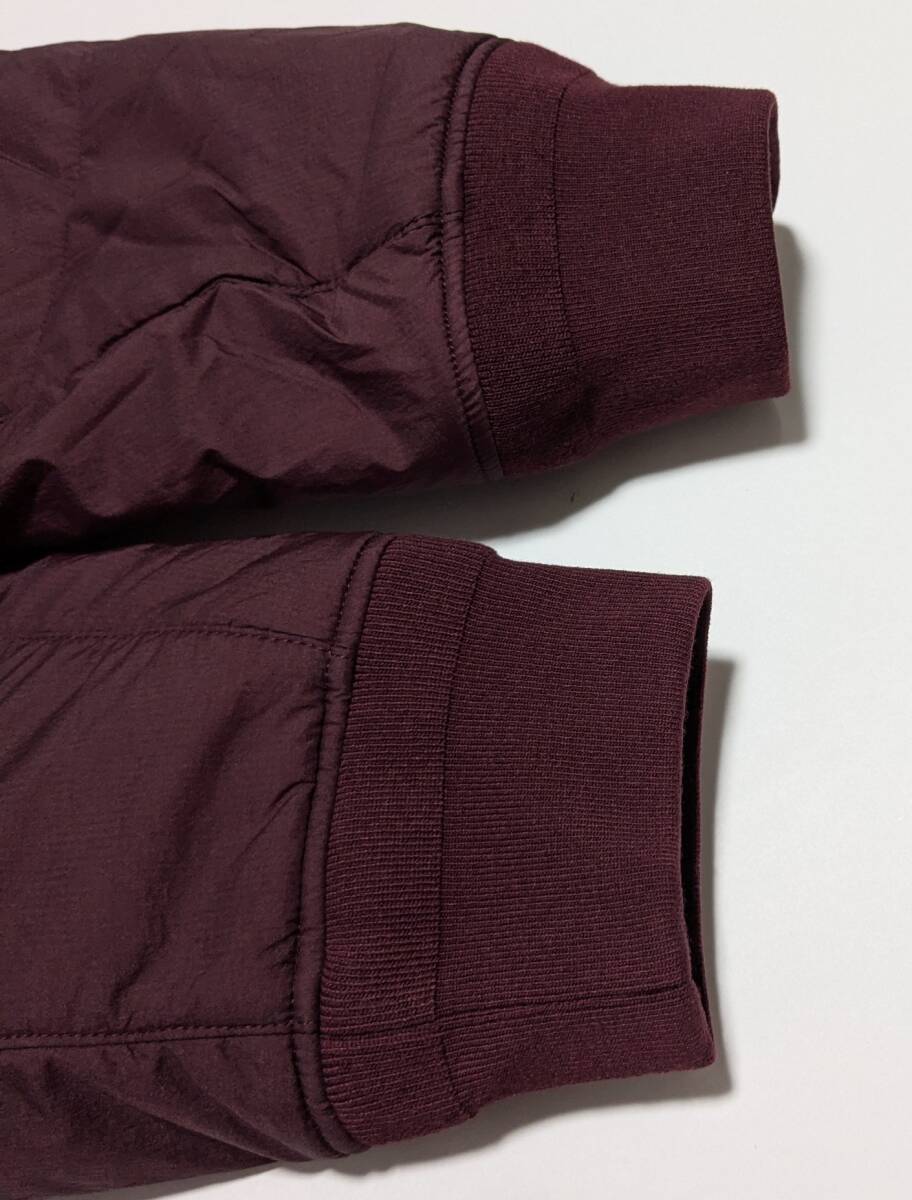 〇身頃部分にダウン、脇と袖部分にポリエステルのシート中綿を使い分けたハイブリッド仕様。小雨程度の水をはじく撥水加工。