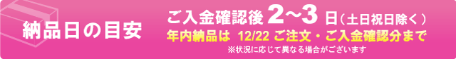 ・ ご入金確認後に納品日の打ち合わせをさせていただきます。