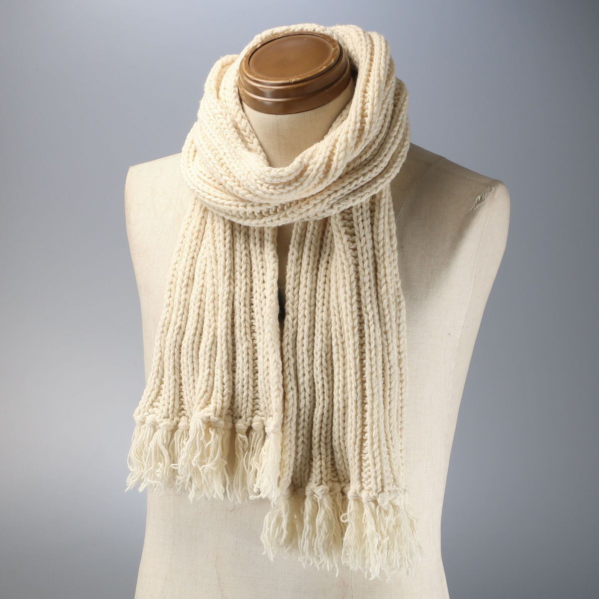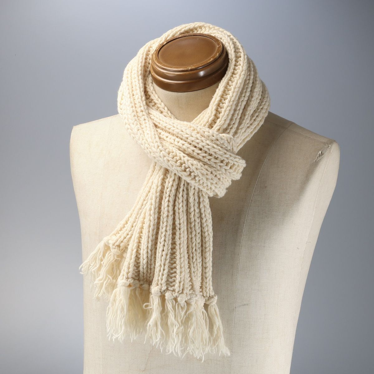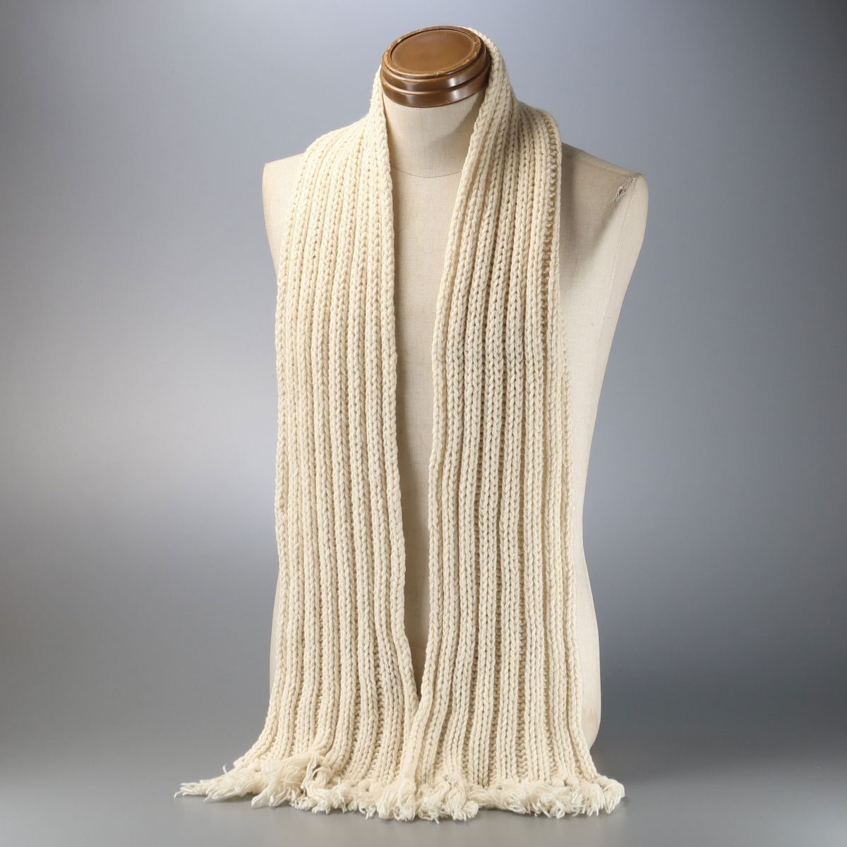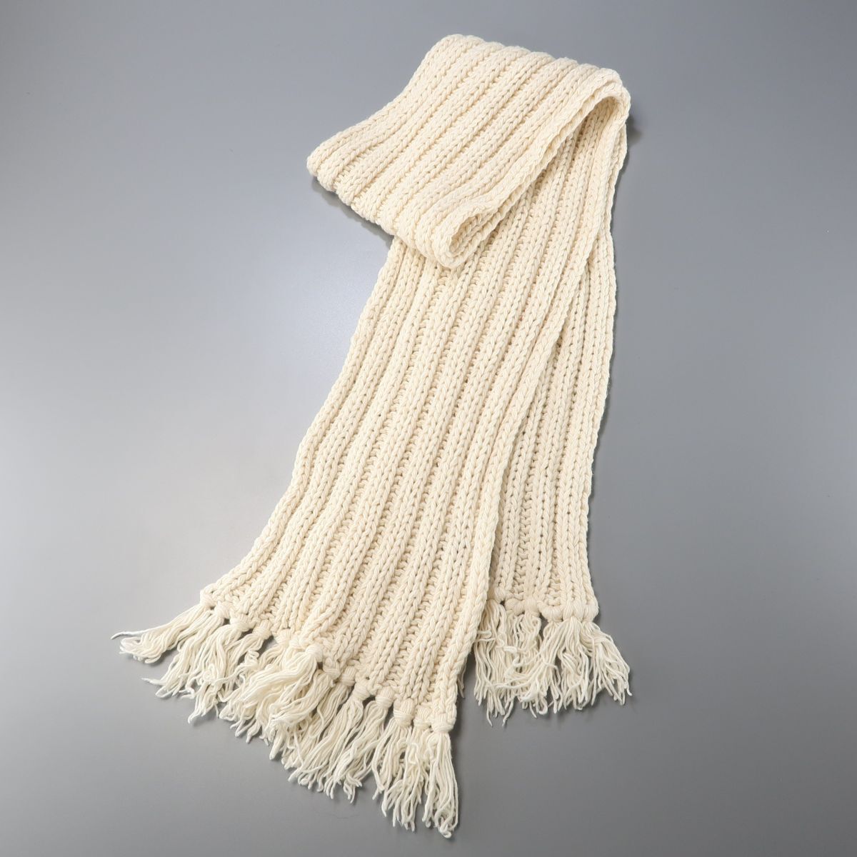 | TJ6285◎イタリア製 Zegna Sport ゼニアスポーツ ウールコットン ミドルゲージ ニット マフラー ストール ショール アイボリー系 | |||