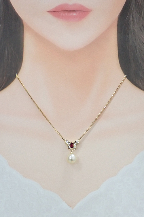 【セール開催中】三越 白蝶真珠(南洋真珠) ネックレス ダイヤモンド ルビー K18YG MITSUKOSHI 蝶 チョウ バタフライ パピヨン 宝正 903045