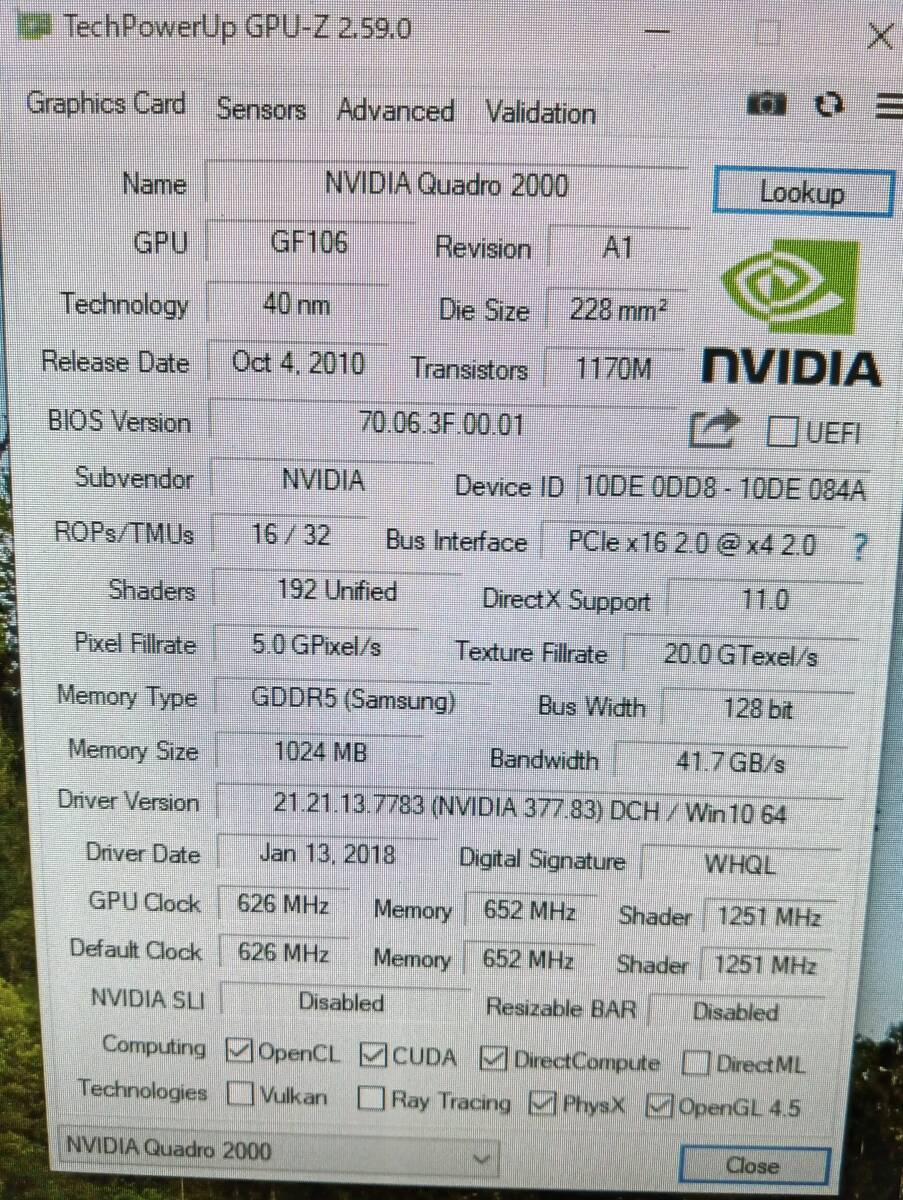 【中古パーツ】NVIDIA Quadro 2000 1G グラフィックボード/ビデオカード PCI-E DP/DVI■BK290-1