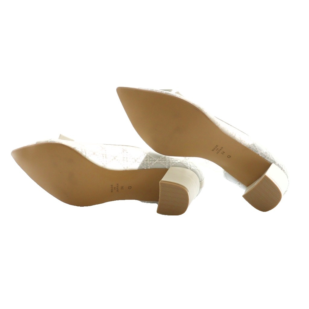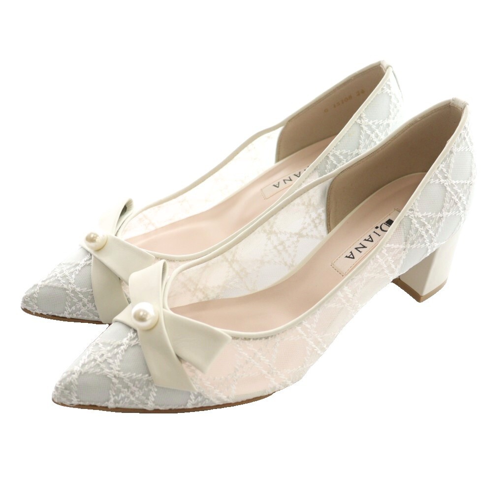 ダイアナ DIANA パールリボンパンプス 24cm 白 ホワイト グレー /SS ■OS レディース
