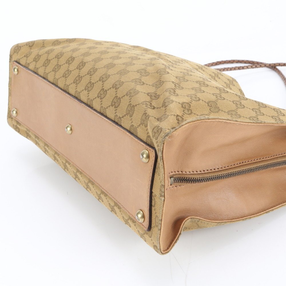 1円■極美品■グッチ■GG キャンバス 109140 レザー トート バッグ 肩掛け ショルダー ハンド ブラウン 茶色 A4 レディース RCE DD38-2