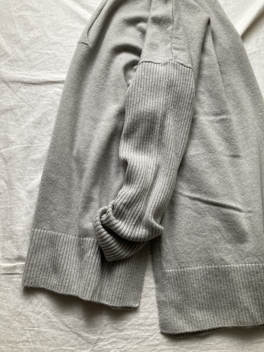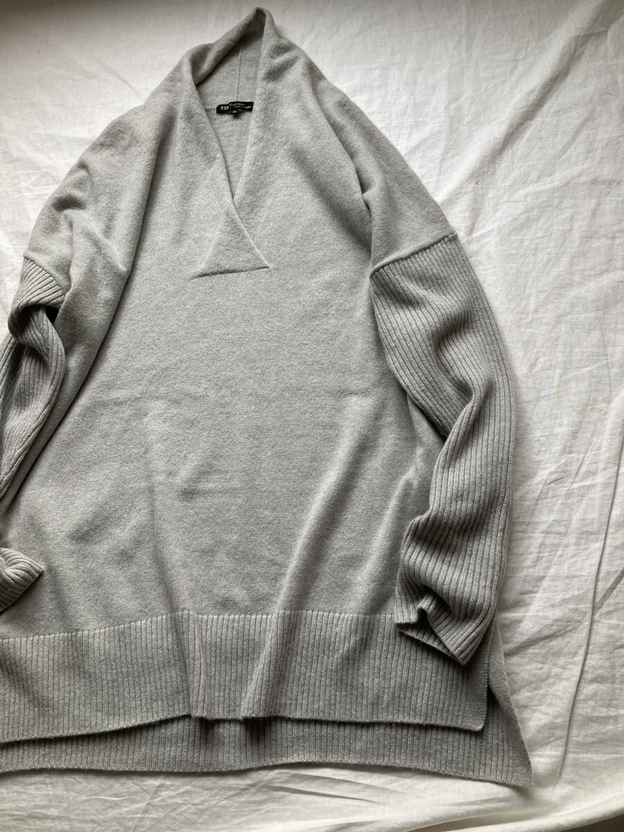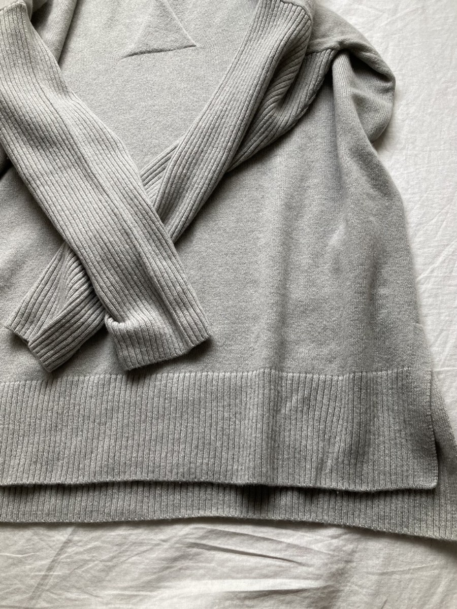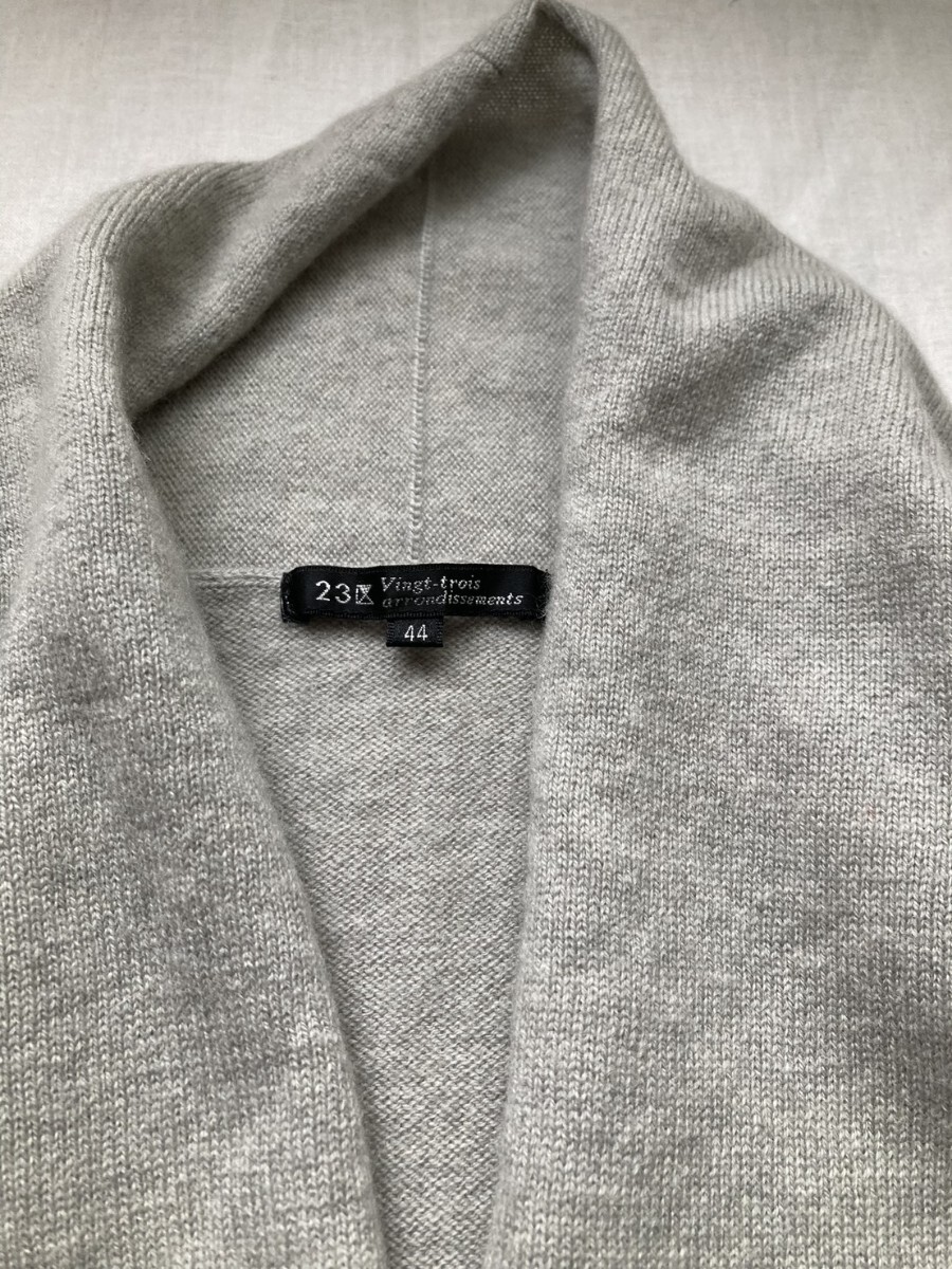 ふわっと柔らかなカシミヤ混のニットで、程よくゆったりとしたシルエットのニットです。首元があたたかいショールカラーで女性らしい雰囲気も素敵です。