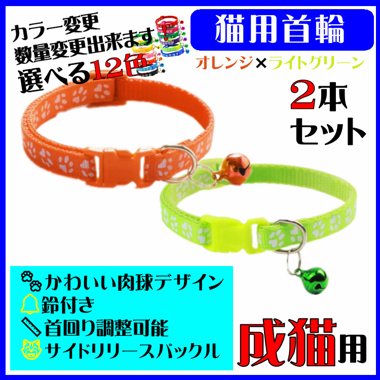 | ★☆(C72-1) 猫の首輪 成猫用 肉球のデザインが可愛い猫用首輪【2本セット】☆★ | |