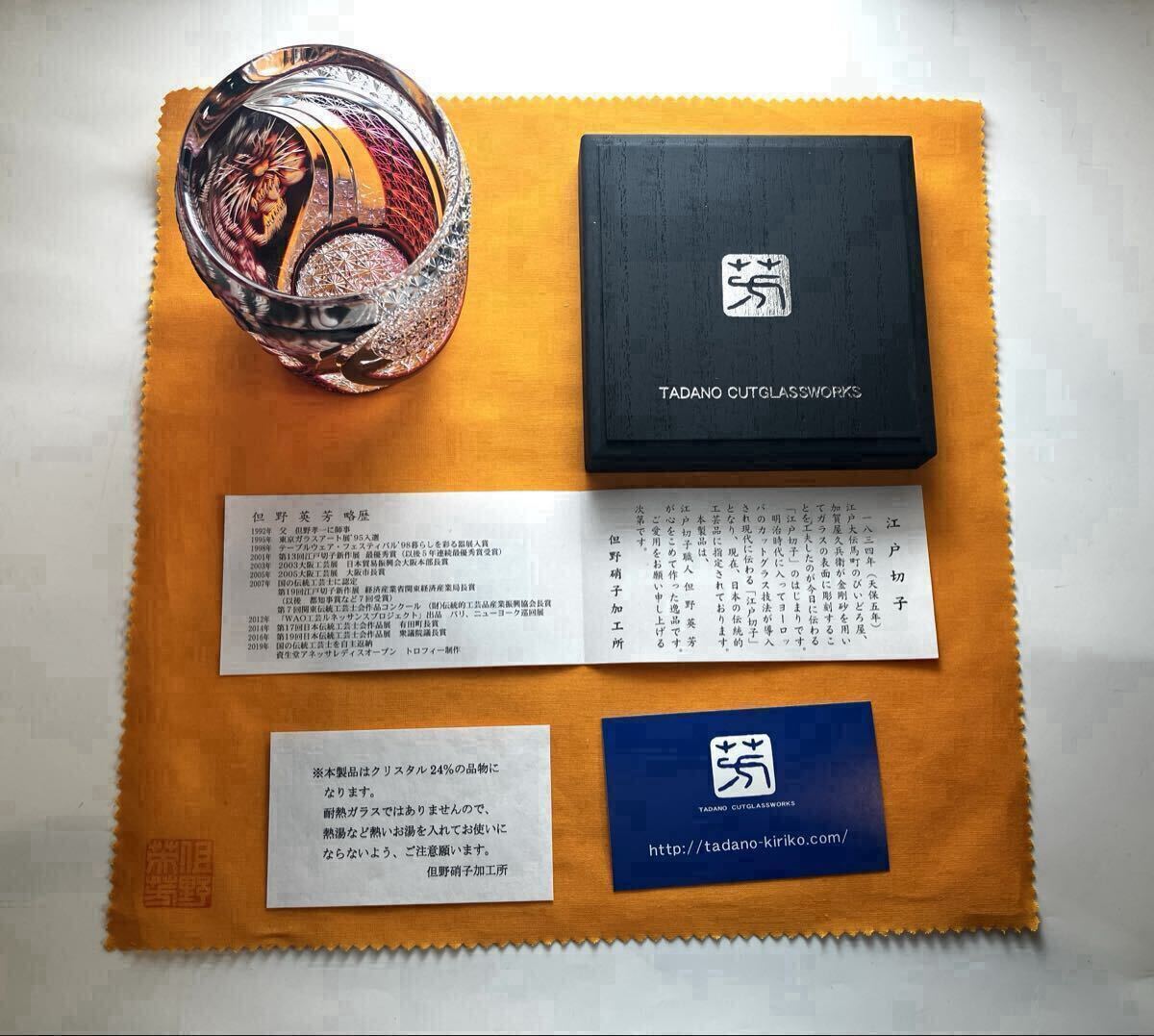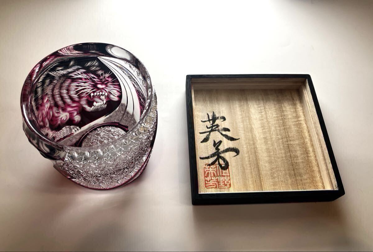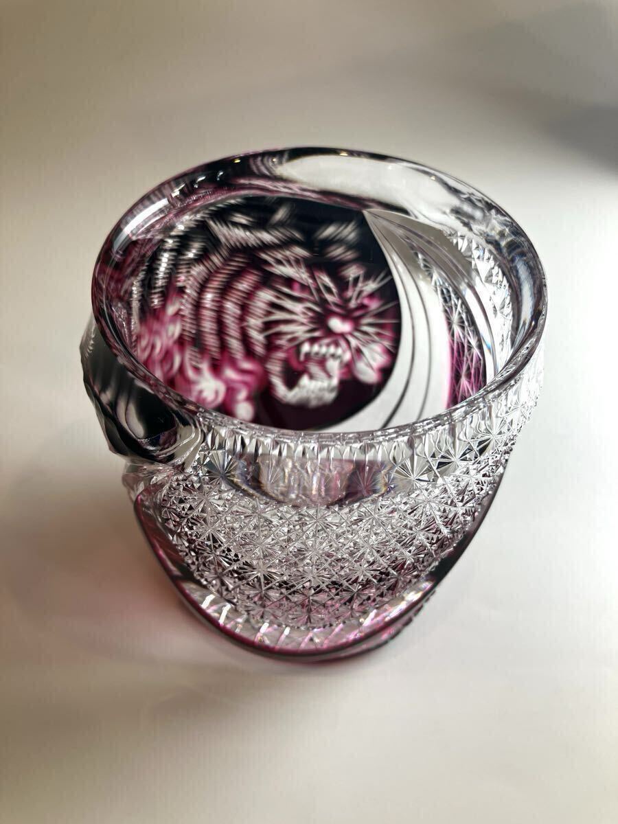 但野英芳作の四神-白虎を切子で表現した江戸切子のロックグラスになります。