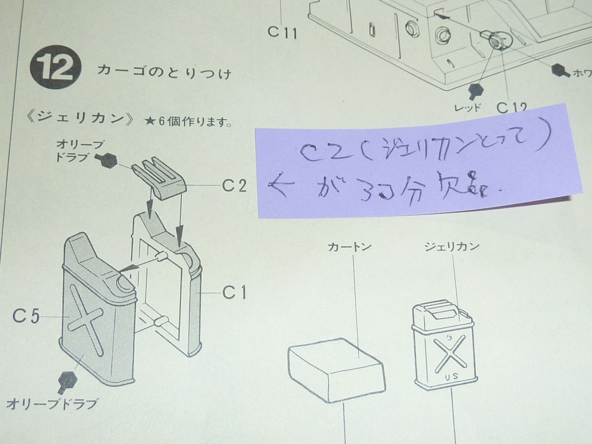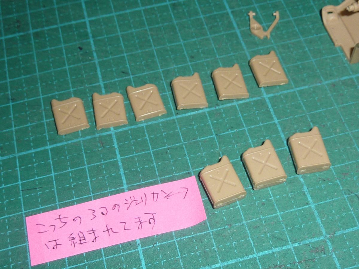 ジェリカンは6個組めるのですが、ジェリカンの取っ手部分のパーツが3個欠品しております。
