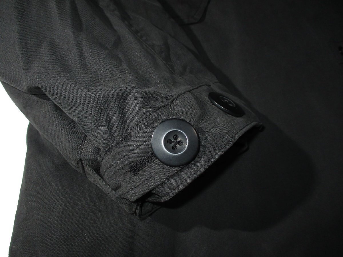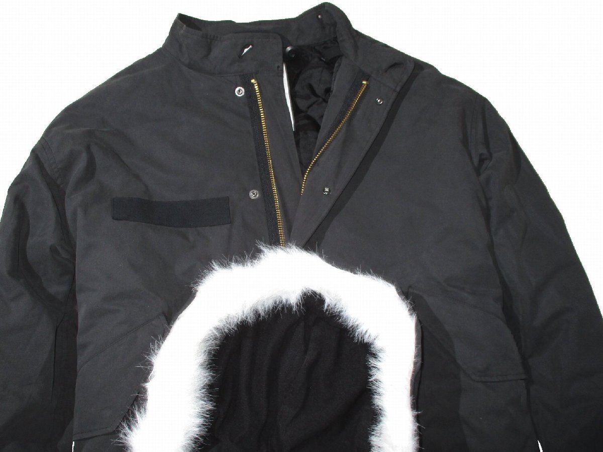 普段XL着用の方が着て程良いゆとりがあるシルエット。背面すそのフィッシュテールはスナップボタンで留めて横一文字テールでの使用も可能です。フードを取り外せば立衿コートとして着られます(ファーは取り外し不可)。
