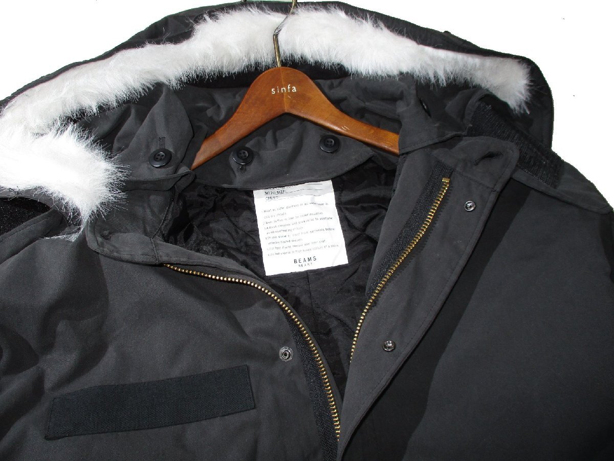 新品 冬物 XL ▼ ビームス BEAMS HEART ▼ 中綿入り 立衿 フード付き 2way モッズコート コート 黒 メンズ LL BIGサイズ ミリタリーコート