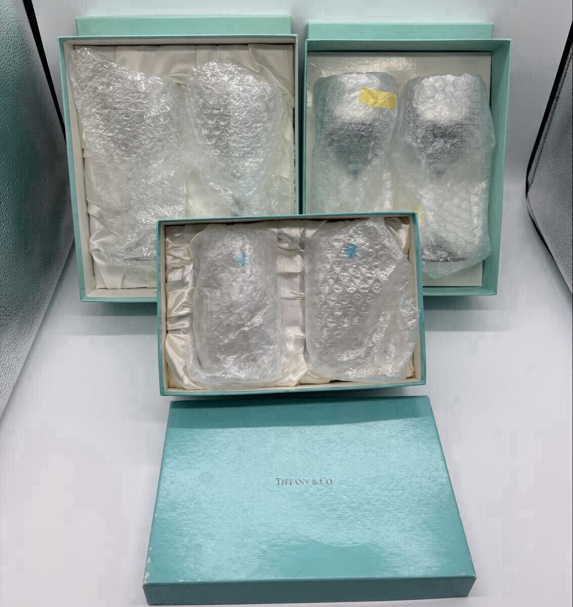 Tiffany & Co.のクリスタルグラス2個セットを3箱です。