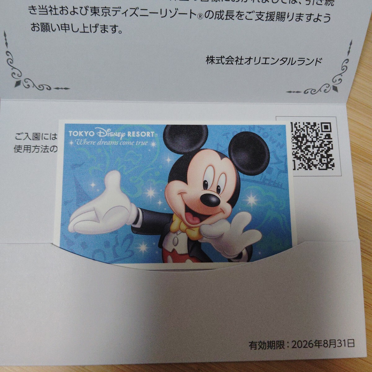オリエンタルランドの株主優待でいただいた優待券です。