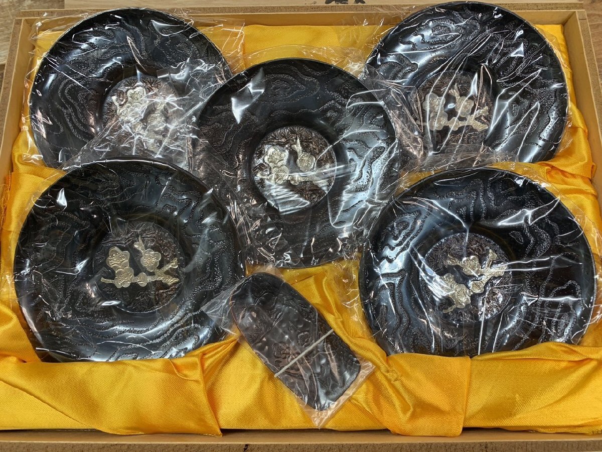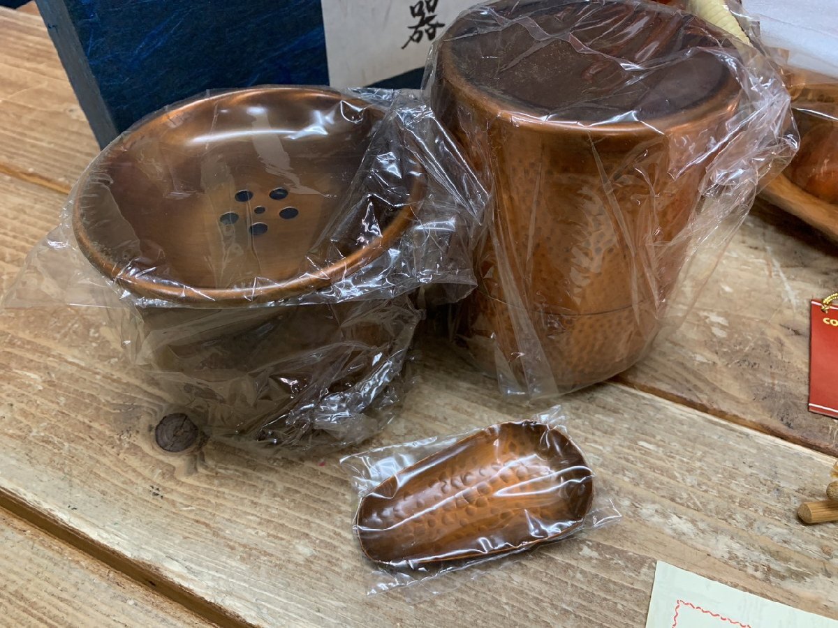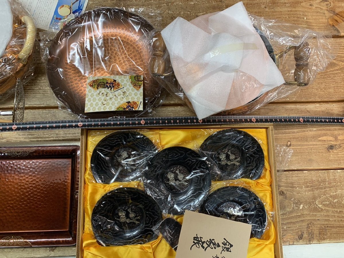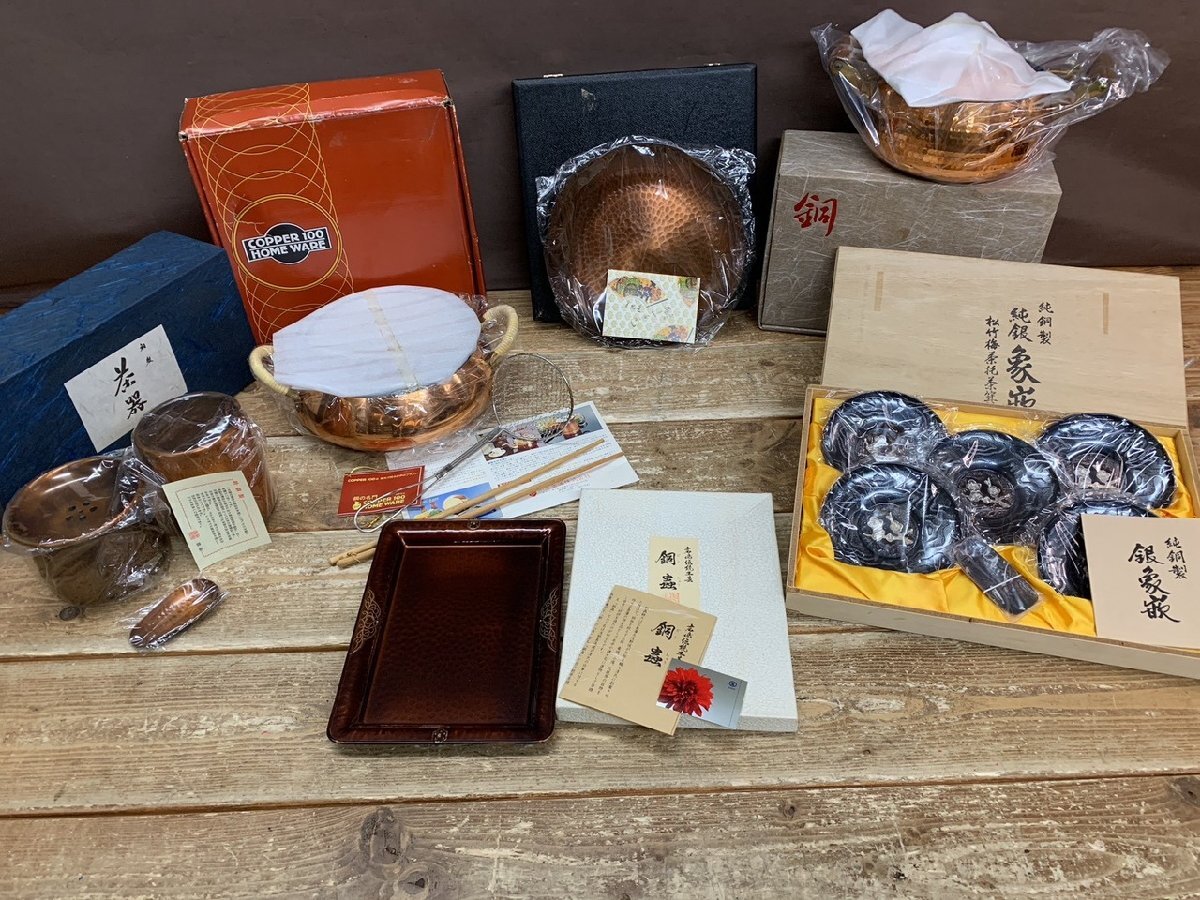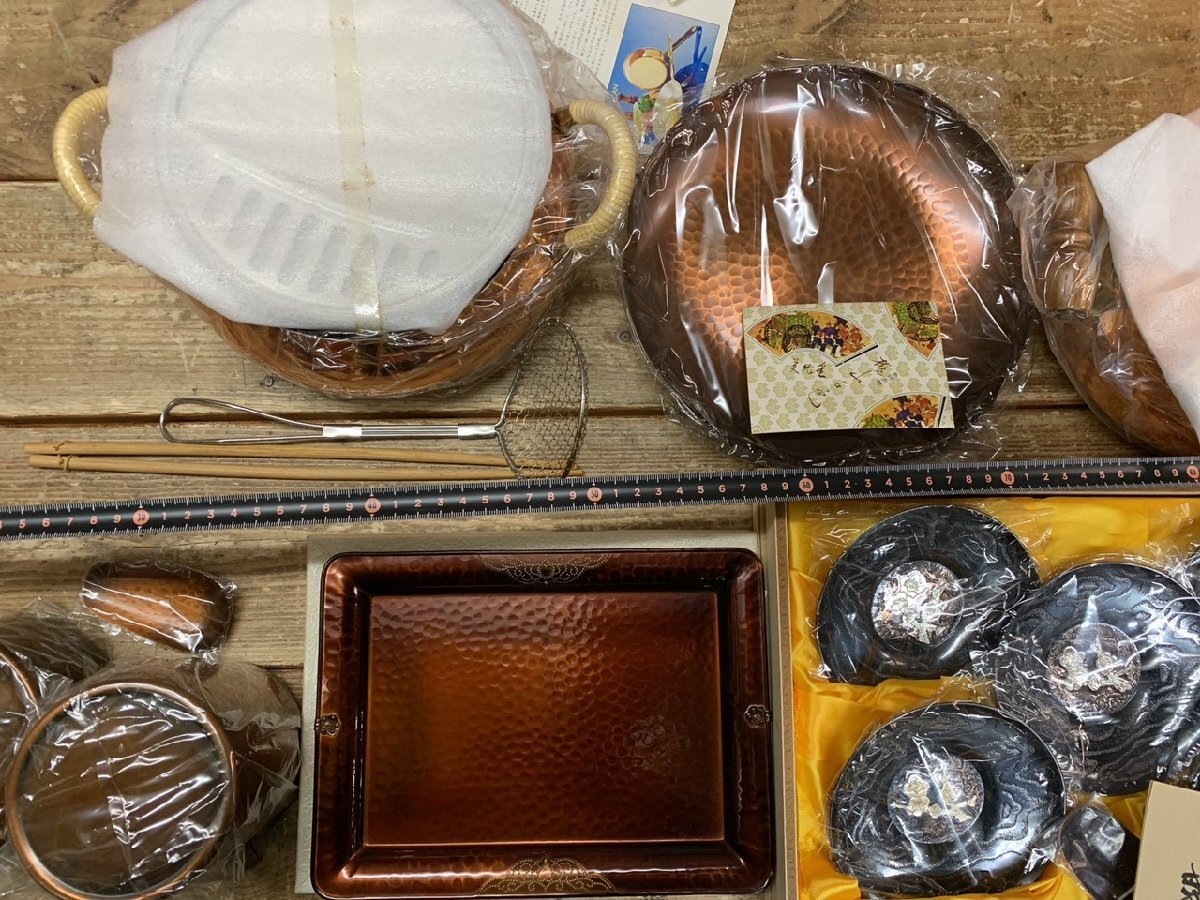 【O-8577】銅製 和食器 まとめ セット 銅 松竹梅 象嵌 茶托 今泉 茶道具 COPPER 鍋 広島 銅蟲 トレイ 約6.4kg 東京引取可【千円市場】