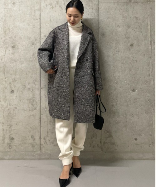 素材:表地: ポリエステル55%ウール45%、裏地: ポリエステル100%