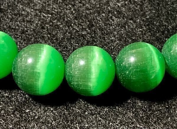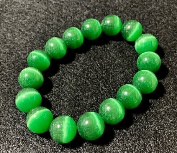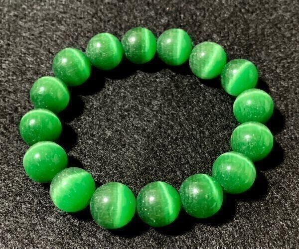 【Premio Fortuna】グリーンのキャッツアイブレスレット パワーストーン 直径約12ミリ 装着内周約16.5センチ 506223☆
