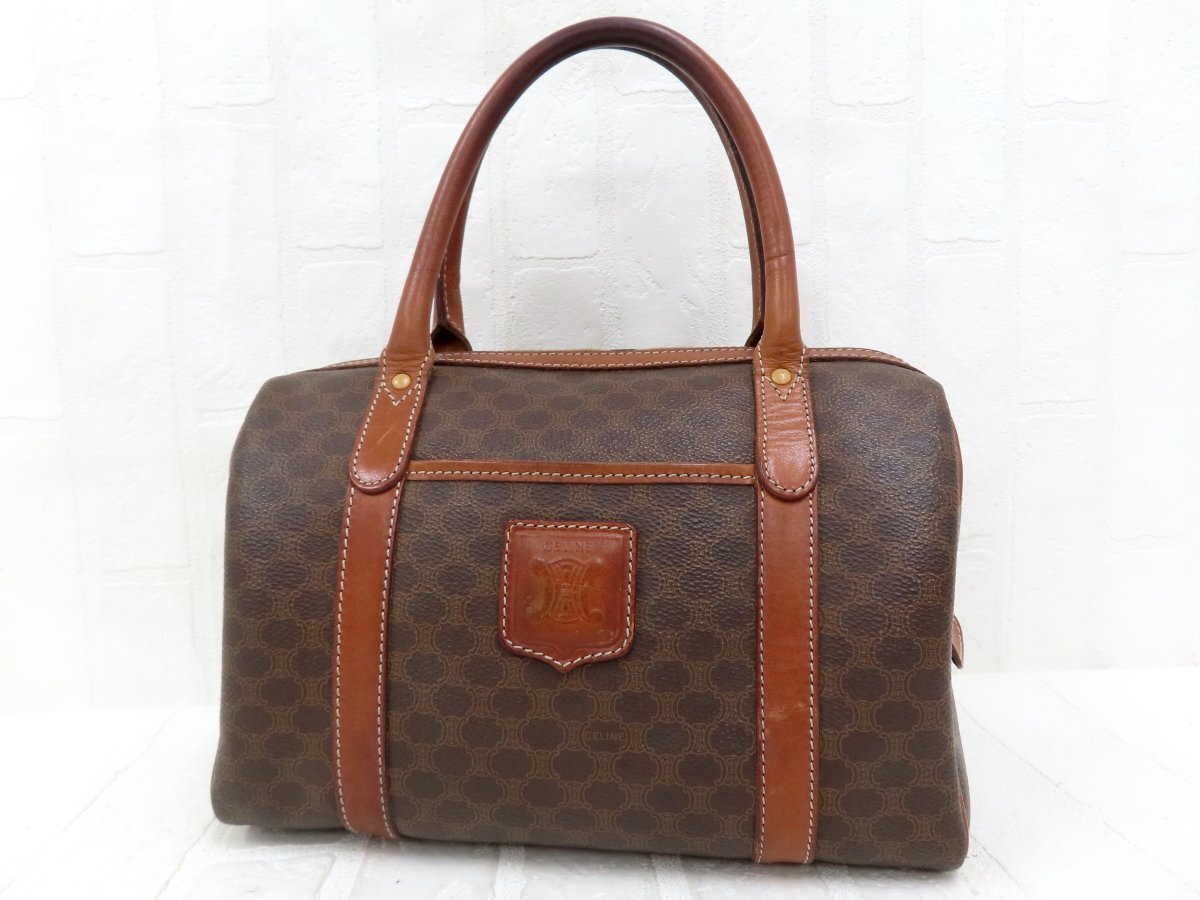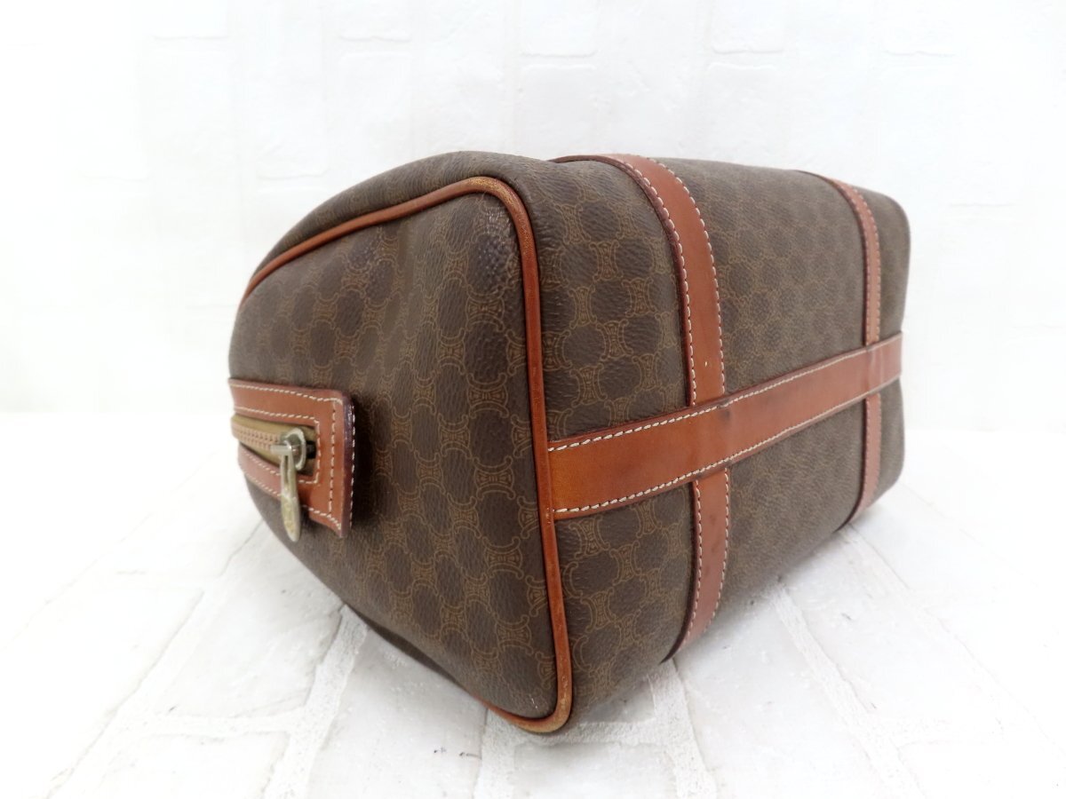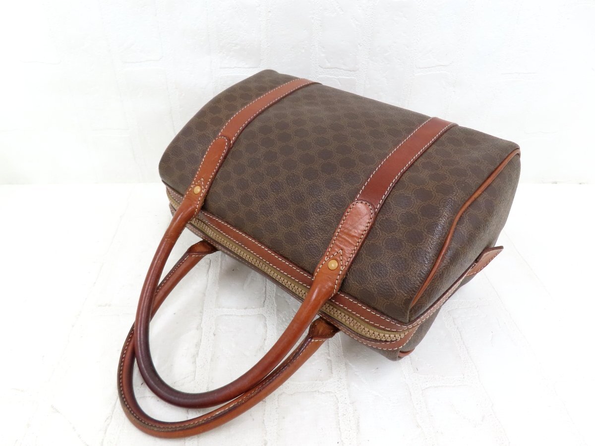 ◆CELINE セリーヌ◆マカダム◆PVC カーフ レザー 本革◆ハンド バッグ ミニボストン◆ブラウン ゴールド金具◆腕掛け◆ロゴ型押し◆A14724