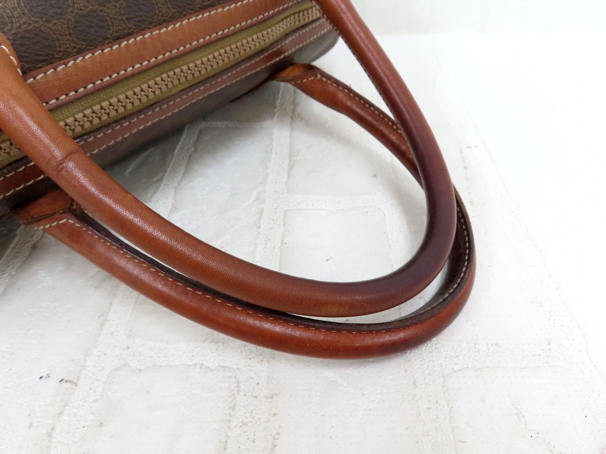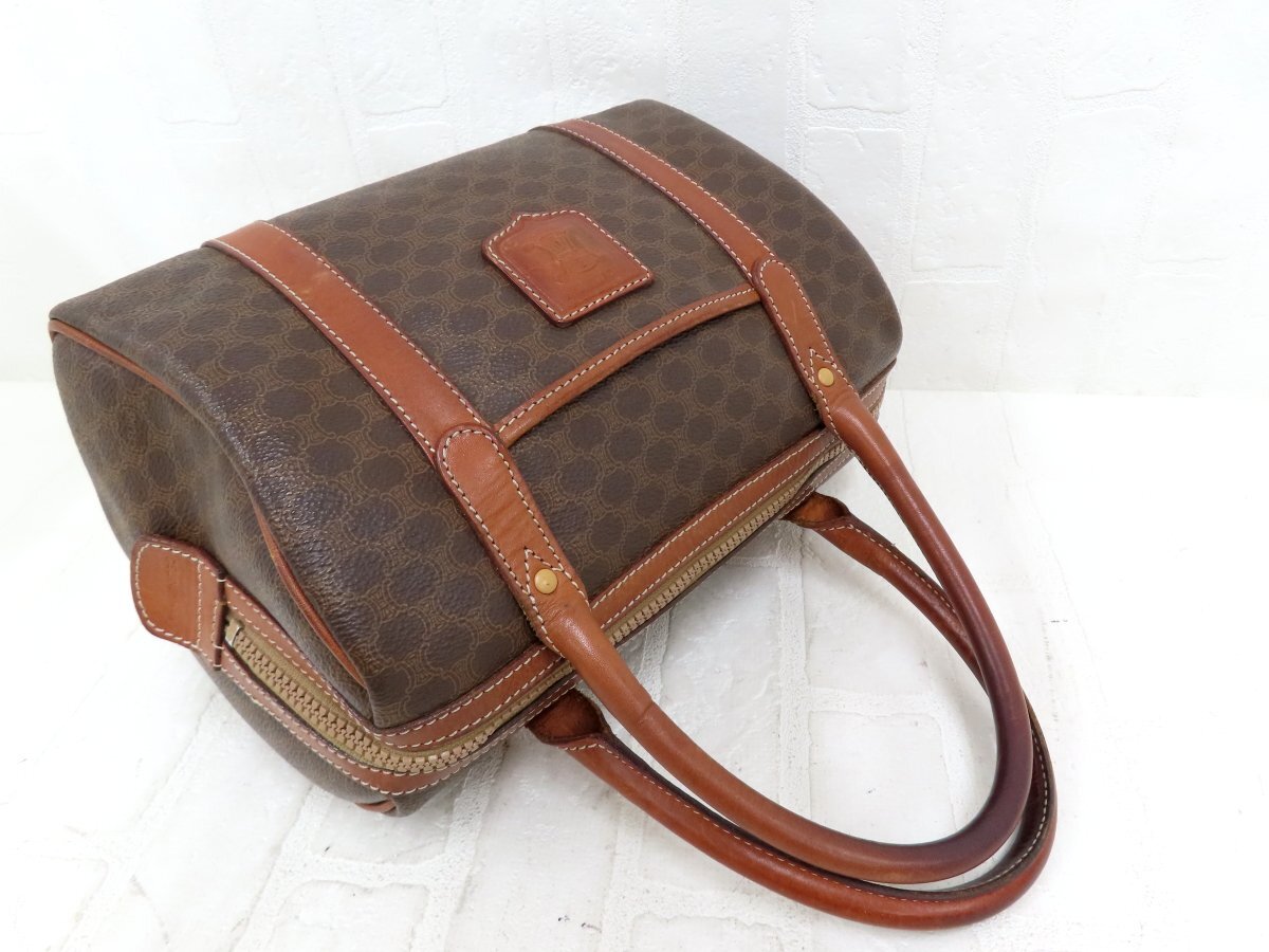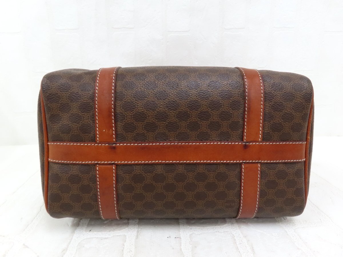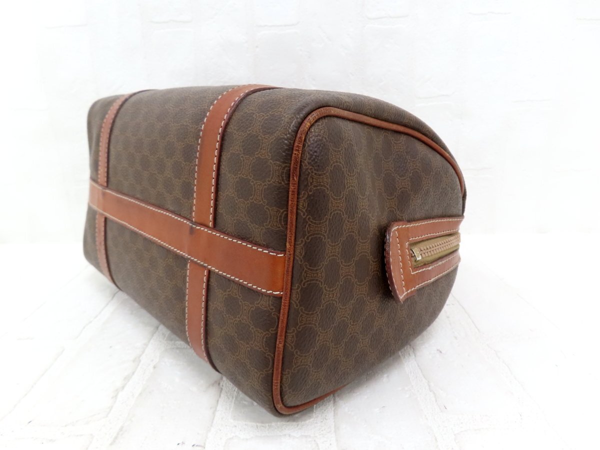 ◆CELINE セリーヌ◆マカダム◆PVC カーフ レザー 本革◆ハンド バッグ ミニボストン◆ブラウン ゴールド金具◆腕掛け◆ロゴ型押し◆A14724