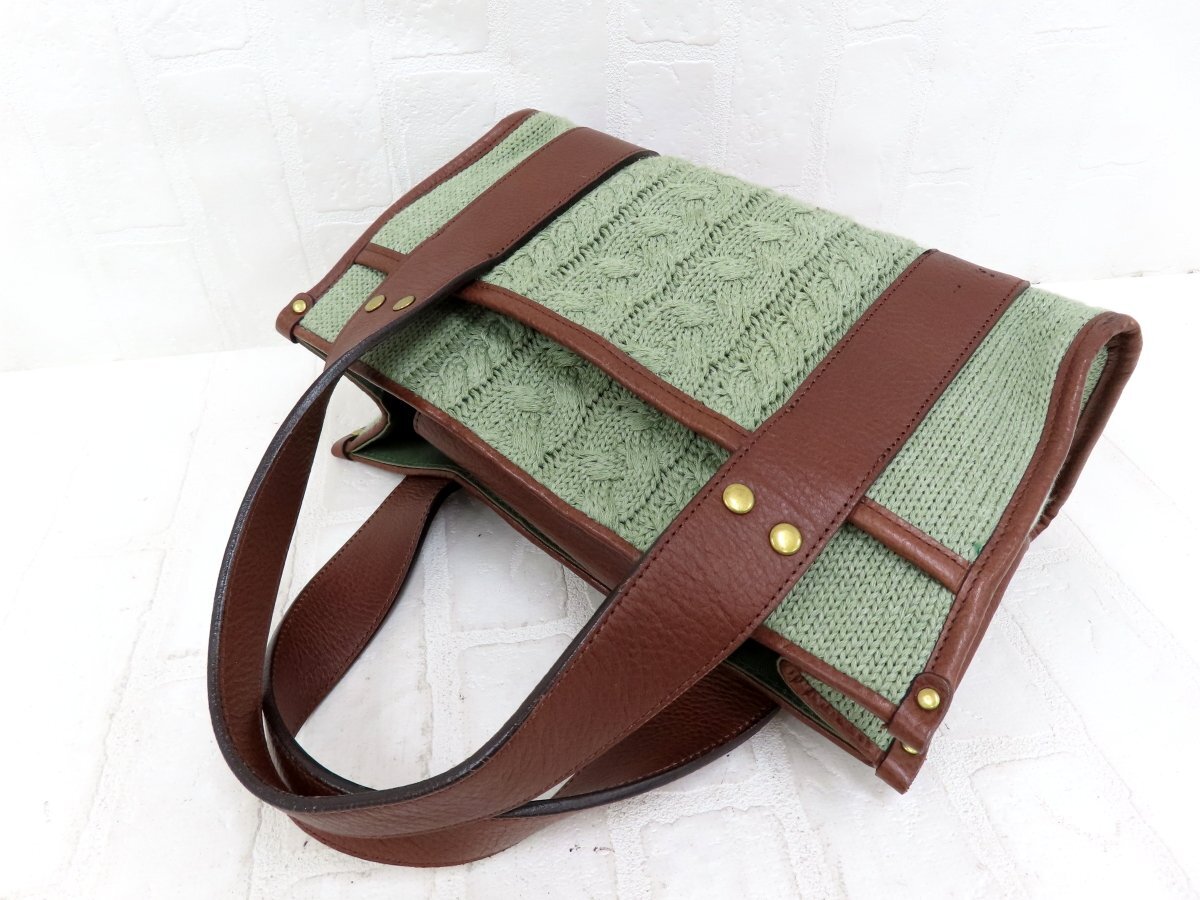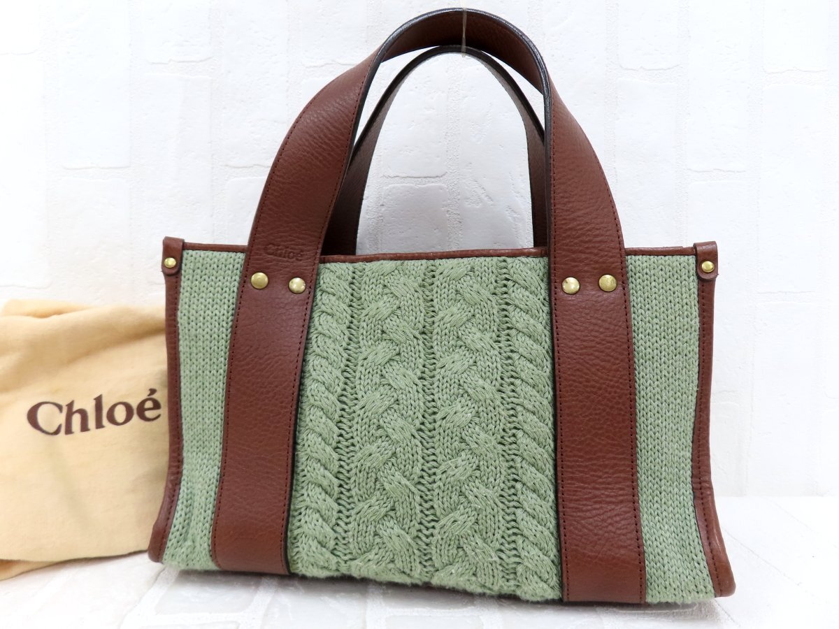 ◆超美品◆Chloe クロエ◆ニット カーフ レザー 本革◆ハンド バッグ ミニトート◆グリーン系 ブラウン ゴールド金具◆腕掛け◆A14641
