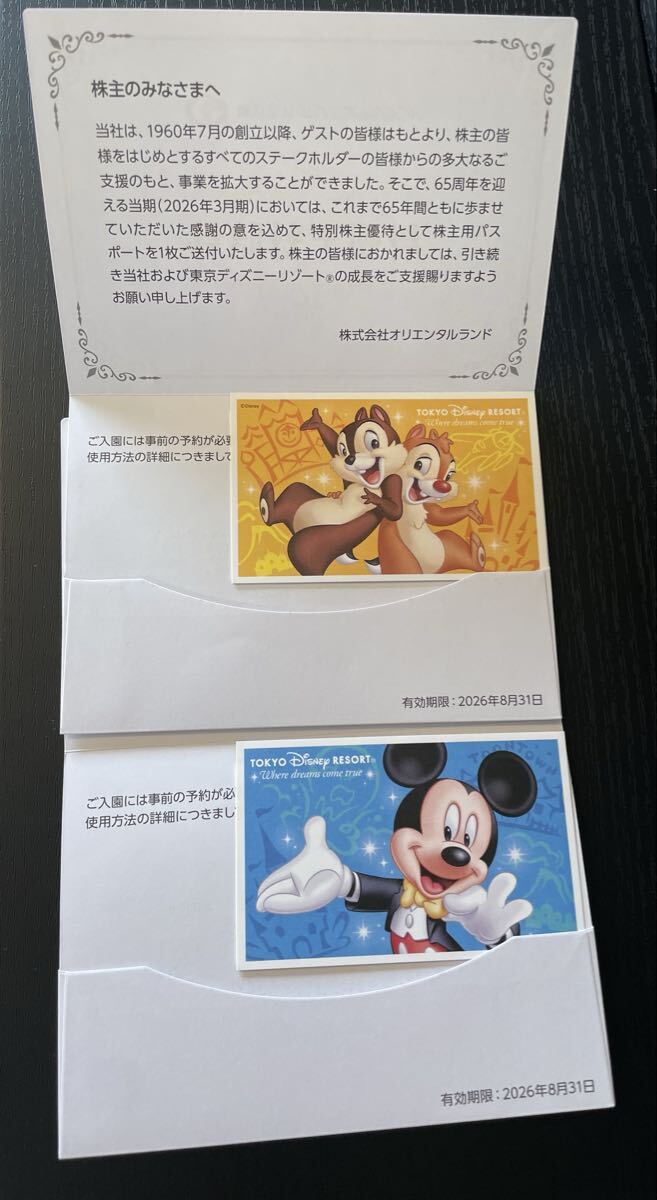 東京ディズニーリゾートの株主優待パスポート2枚セットです。