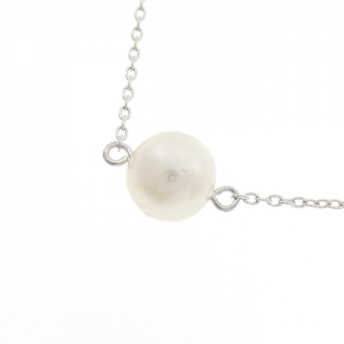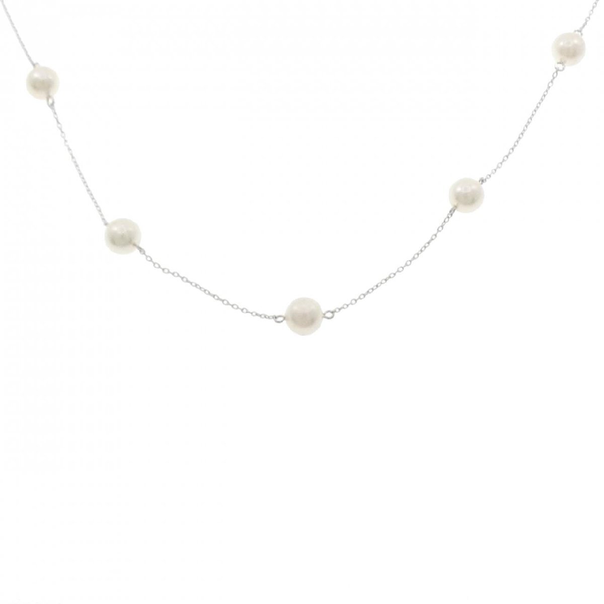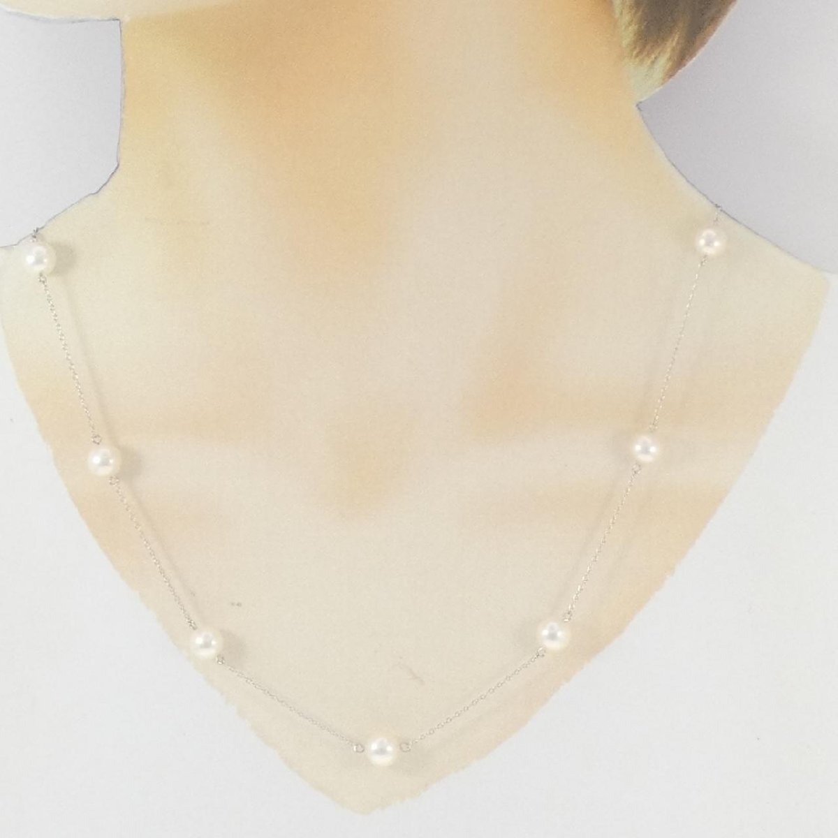 クリアな輝きのホワイトゴールドに、アコヤパールの柔らかな光沢が映えるネックレスです。清楚でありながらも華やかさを兼ね備え、デコルテを上品に飾ります。