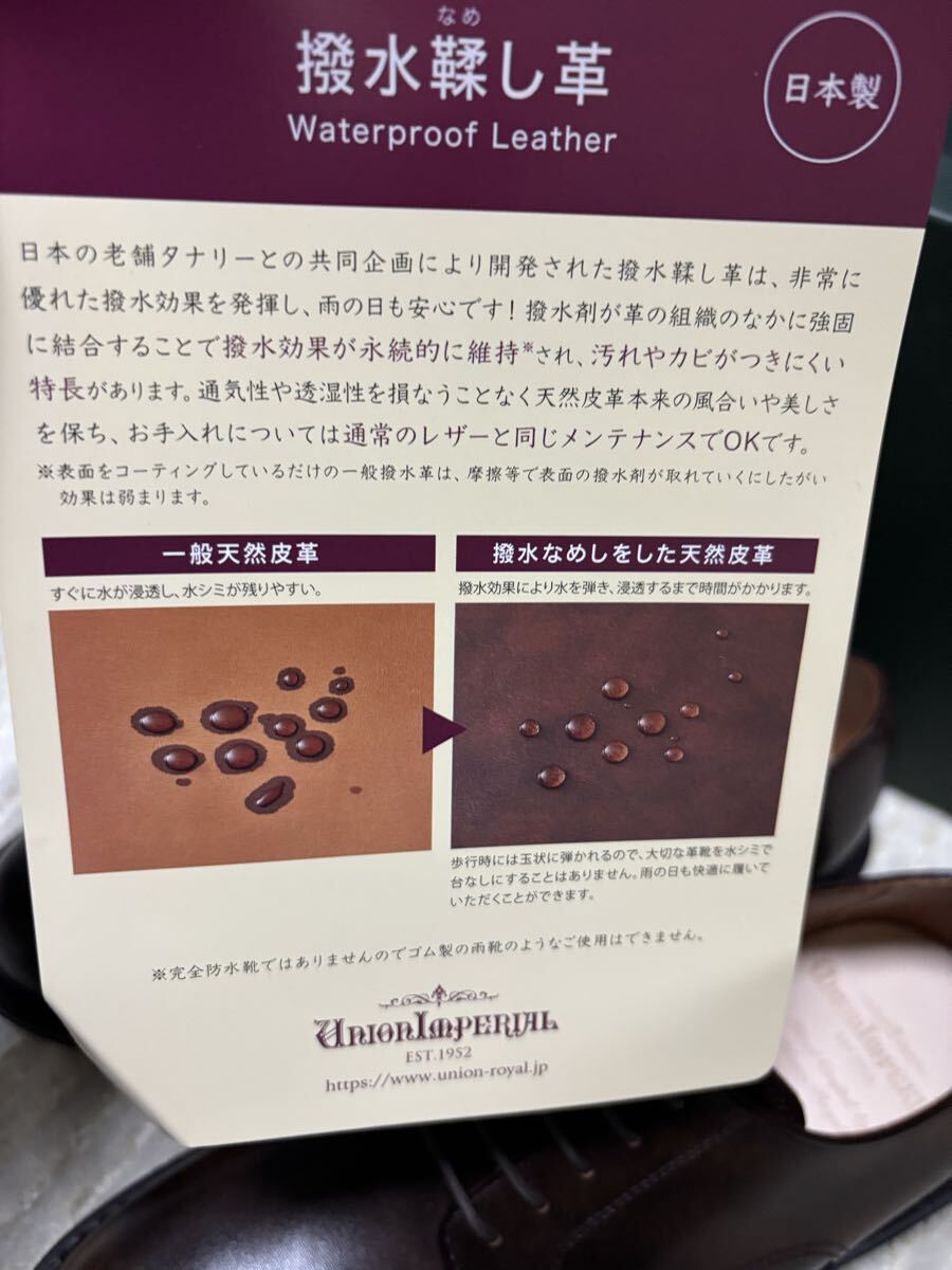 アッパーレザーには日本製の撥水なめし革を使用し雨の日も安心です。撥水剤が革の組織のなかに強固に結合することで撥水効果が永続的に維持され、汚れやカビがつきにくい特長があります。 肌理が細かく艶感のあるレザーはしなやかで堅牢製も高く、長くご愛用いただきたい逸品です。