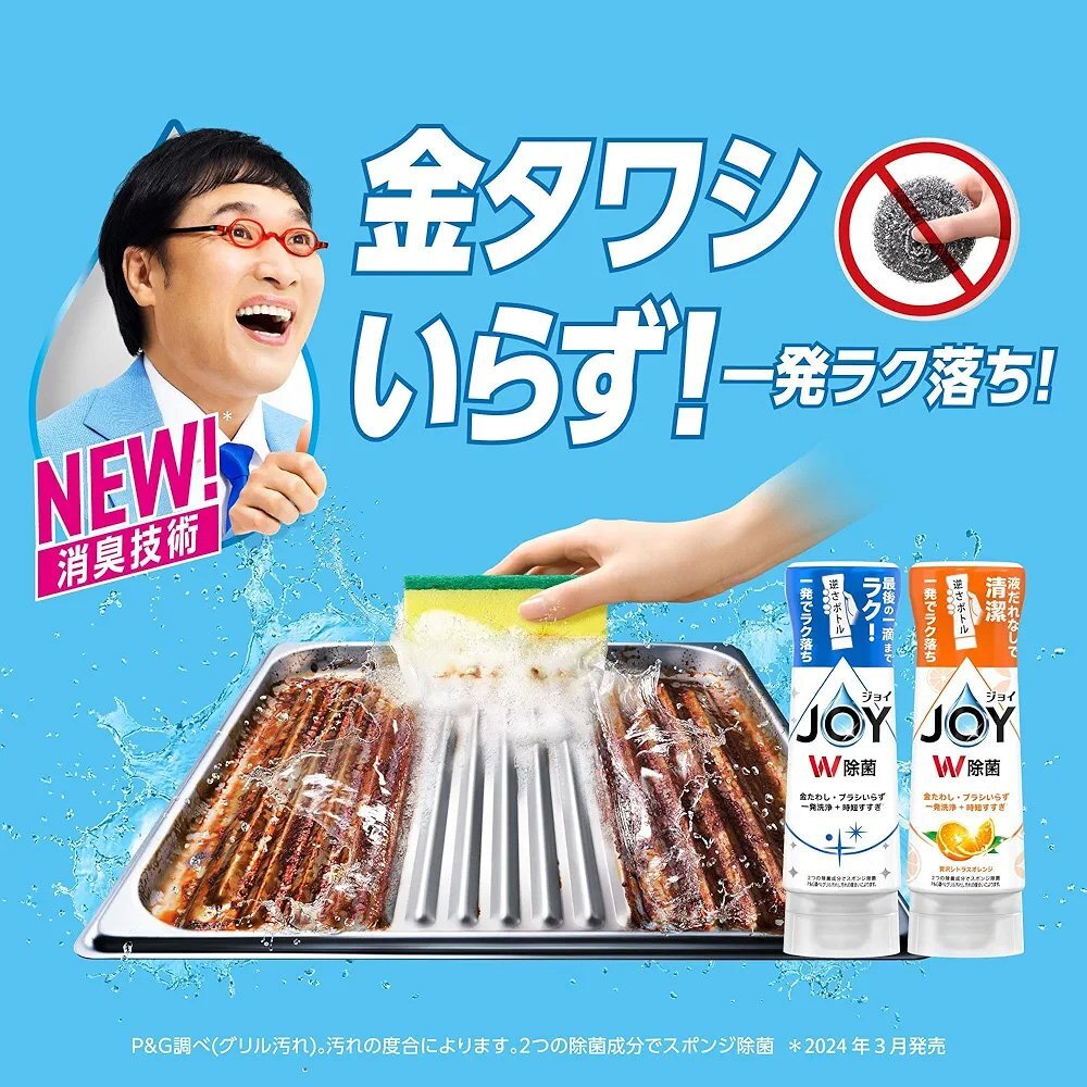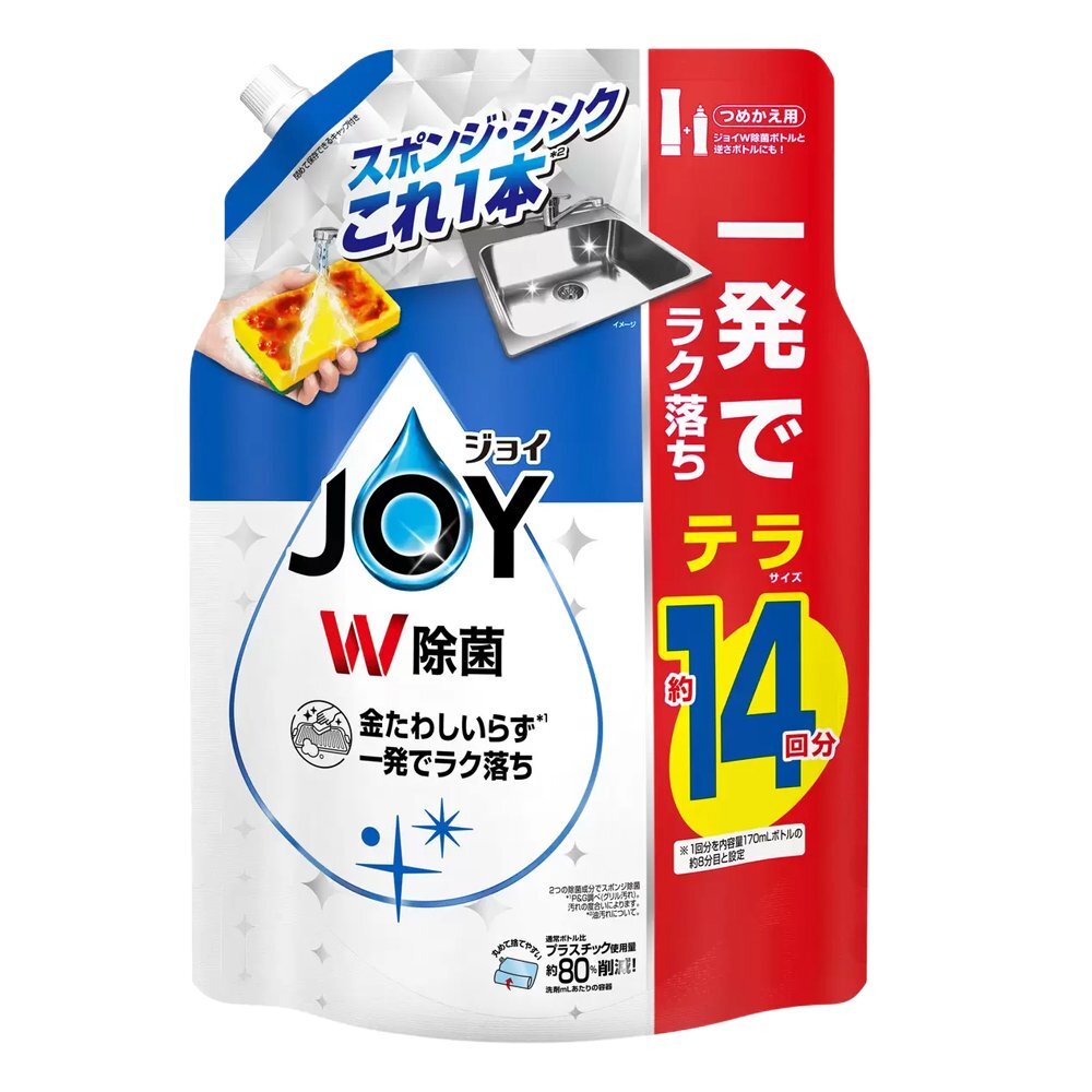 | 商品の説明 | ジョイ W除菌 食器用洗剤 さわやか微香 時短すすぎ*+強力洗浄 金たわしいらず 一発でラク落ち スポンジ・シンク これ1本 *2 2つの除菌成分でスポンジ除菌 さわやか微香の香り。 ジョイW除菌ボトルと逆さボトルにも! 閉めて保存できるキャップ付き丸めて捨てやすい約14回分 ※1回分を内容量170mLボトルの約8分目と設定*1 P&G調べ(グリル汚れ)。汚れの度合いによります。*2 油汚れについて。 |