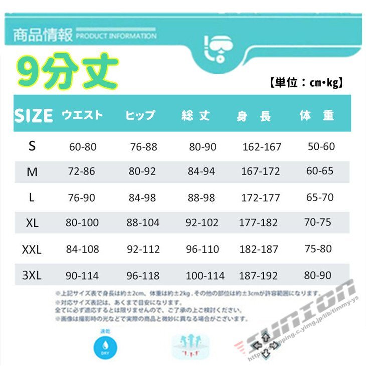 TYPE 5分丈 7分丈 9分丈サイズ S M L XL XXL 3XL 6XL