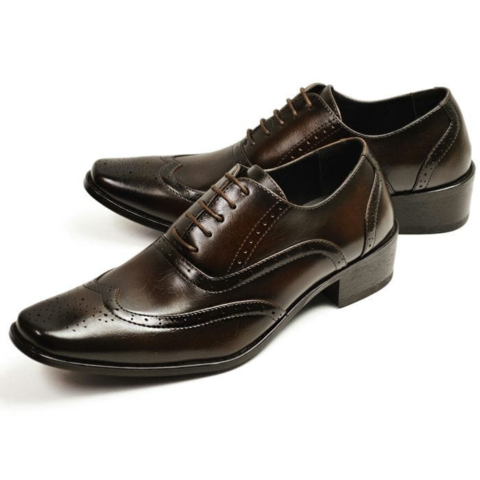 新品■26cm ビジネスシューズ 内羽根 ウィングチップ レースアップ メンズ フォーマル 冠婚葬祭 スクエアトゥ 5cm 身長アップ 紳士靴