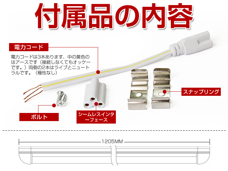 T8 一体型直管形蛍光灯40W形対応、2500ルーメンLED蛍光灯です。発光効率が高い! ◆優れたLEDチップ採用: 驚異的な照射能力と耐久性が持ってます。ムラなく均一の発光で、すっきりと対象物を照らします。 ◆発光源は精銅スタンドを採用します: 熱伝導性と導電性は普通より優れた。チップの発熱量は最小限になります。高輝度低光減衰の特典:3000時間で光減衰率は2%左右です。優れた静電気保護で50000時間以上の長寿命をもつ。 ◆驚きの長寿命: LEDの放熱率が少ない、光衰えも低い、寿命は一層長くなります。 ◆航空アルミを採用: 航空アルミニウムを採用して散熱性能は強くなり、熱で変形しにくいです。 ◆安全性が高い: