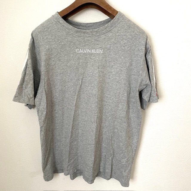 | Calvin Klein カルバンクライン 半袖Tシャツ グレー Sサイズ 肩ライン 胸元ロゴ スポーティー ファッション シンプル カジュアル HMY |