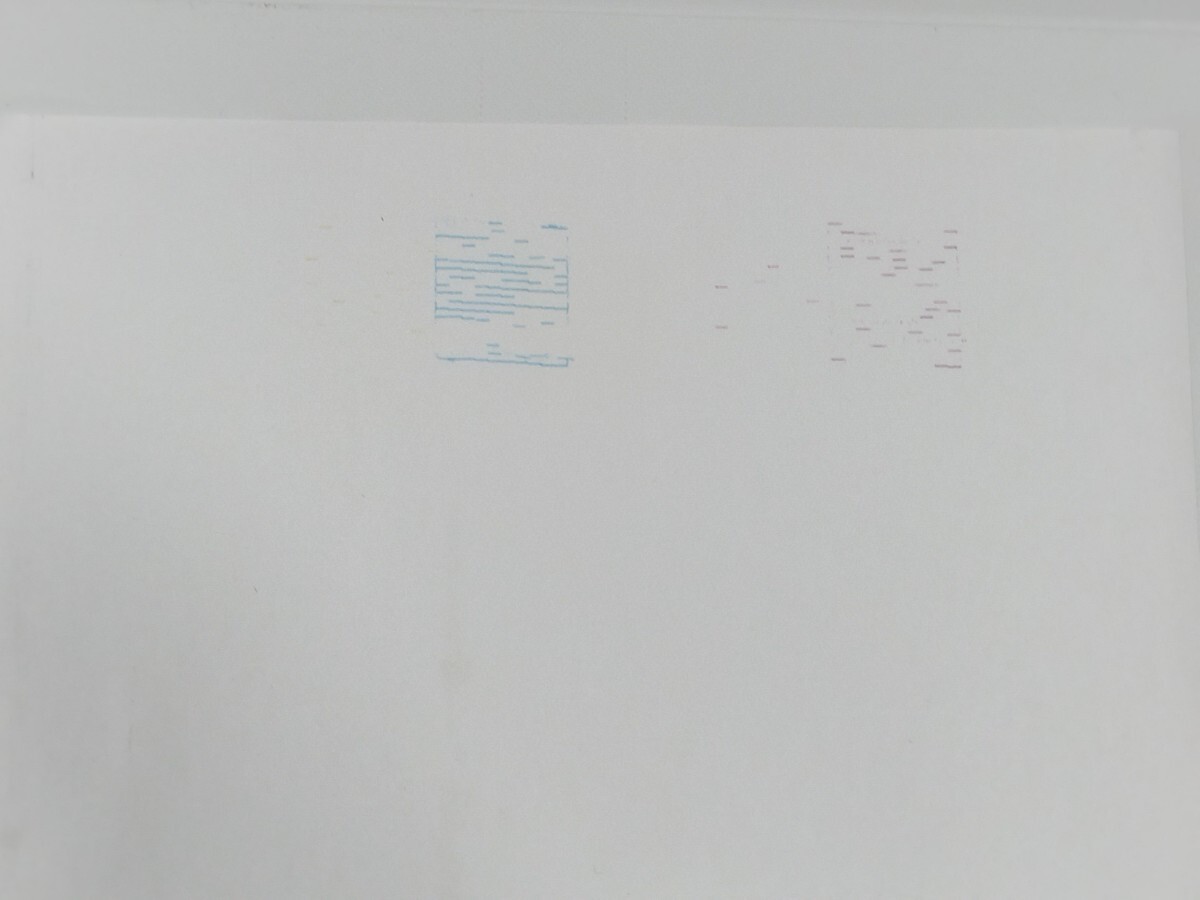 通電し、ノズルチェックを行いましたがカスレや全色出ていません。画像3枚目にてご確認下さい。