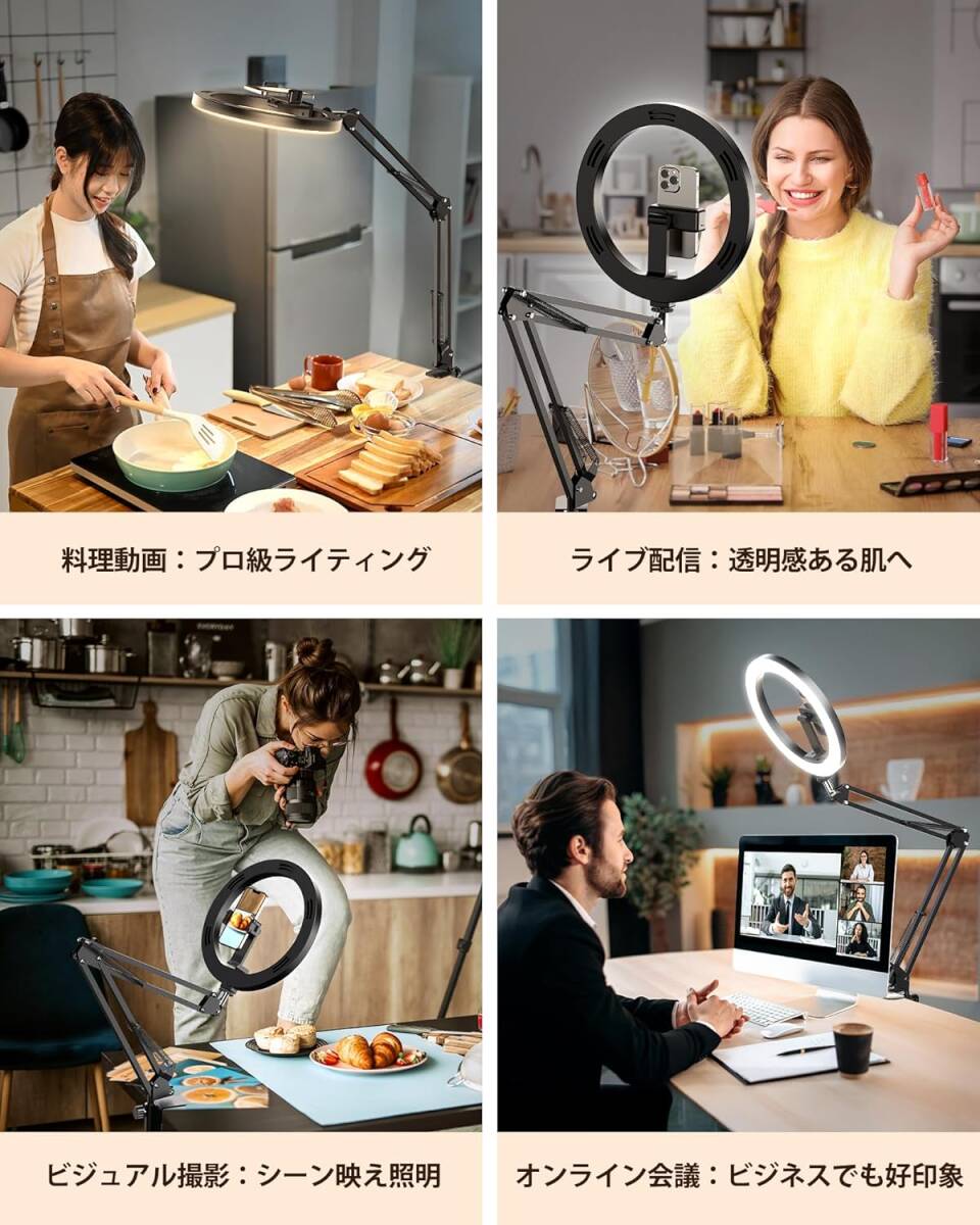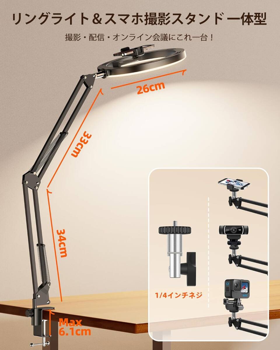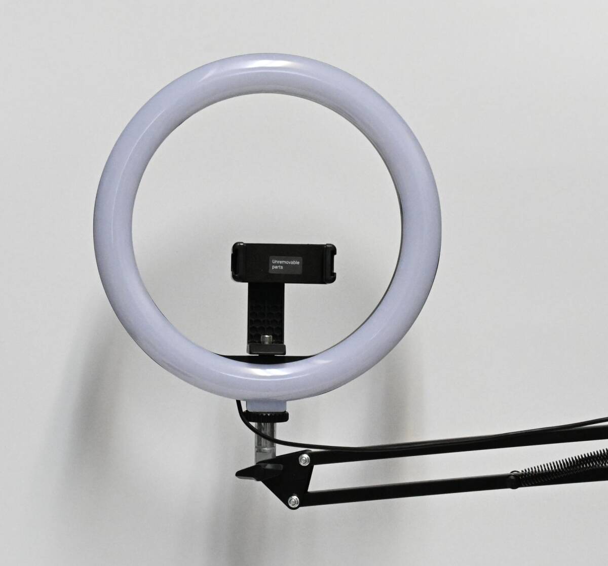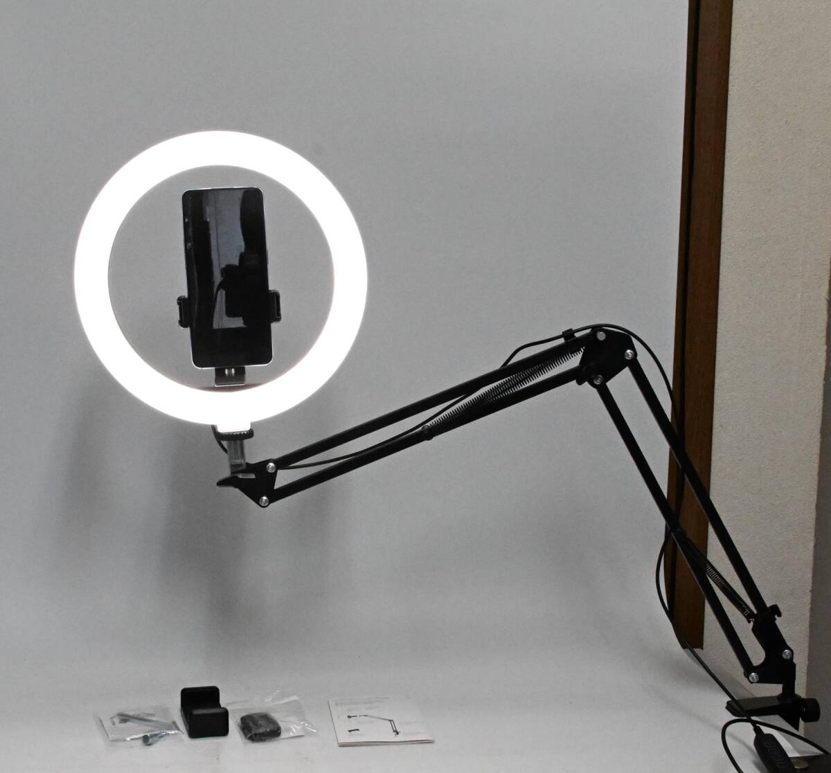 | ★撮影用リングライト 26cm 照明付スマホ撮影スタンド 俯瞰撮影 商品撮影 照度・色味切り替え★ | ||