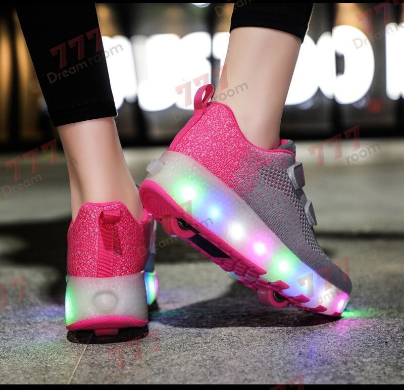 1スタ☆光る☆LED ライトアップスニーカー&ローラーシューズ 一体型 【K-375ピンク 22cm】夜間 スケート靴 反射材 ジョギング 自転車