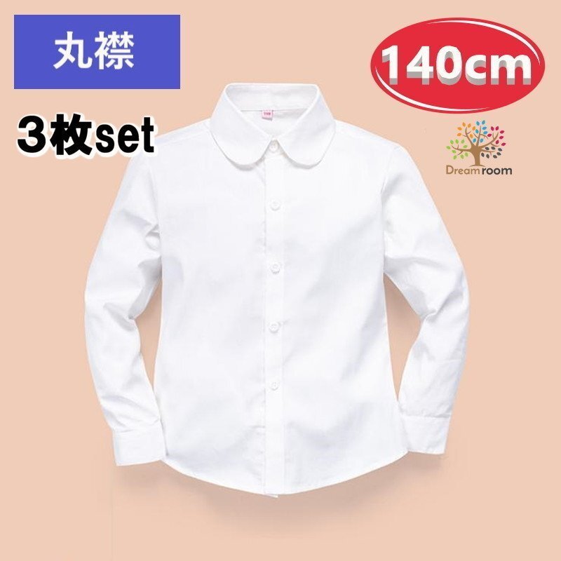 1スタ☆お得な3枚set★綿100% 丸襟 ブラウス【140cm】ワイシャツ 白シャツ 学生服 フォーマル 冠婚葬祭 制服