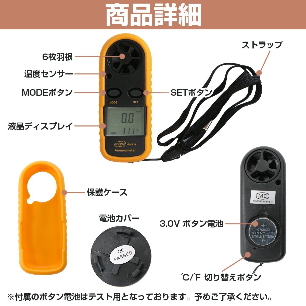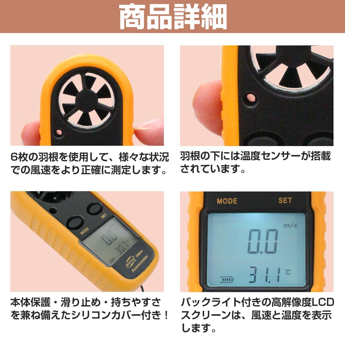 高精度 デジタル風速計 温度計搭載 コンパクト 防水 小型 風力計 温度計 風速計測 風量計 作業現場 漁業 農業 スポーツ