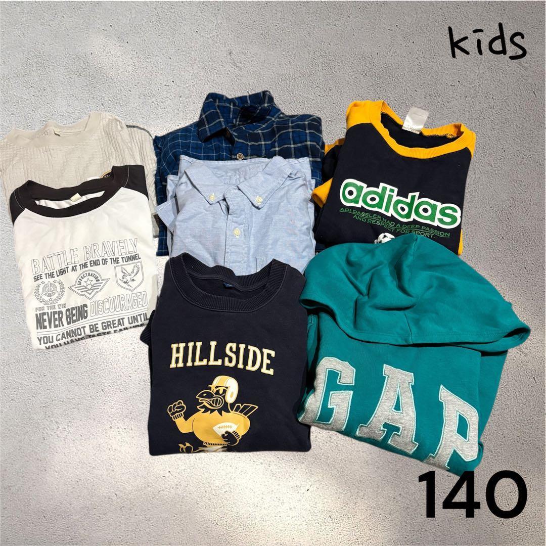 496*キッズまとめ140男【140】7点 半袖 長袖 トレーナー 裏起毛 白黒 4E0664