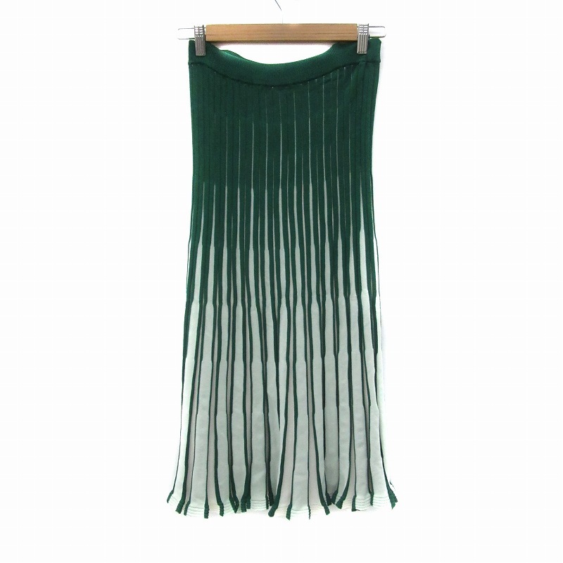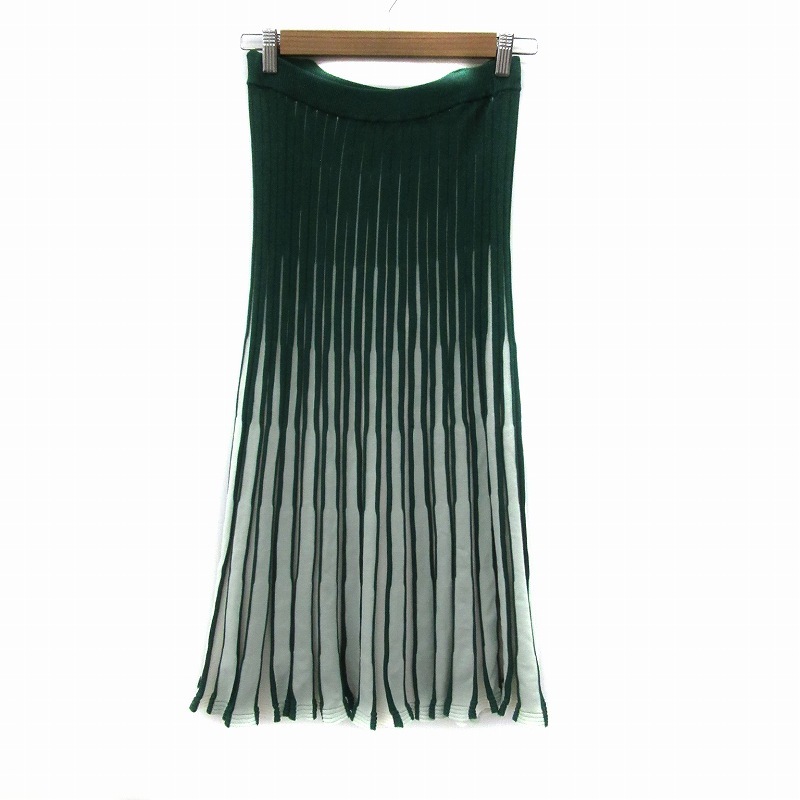 グレースコンチネンタル GRACE CONTINENTAL リブニットフレアスカート ロング丈 ストライプ柄 36 S 緑 グリーン ホワイト レディース
