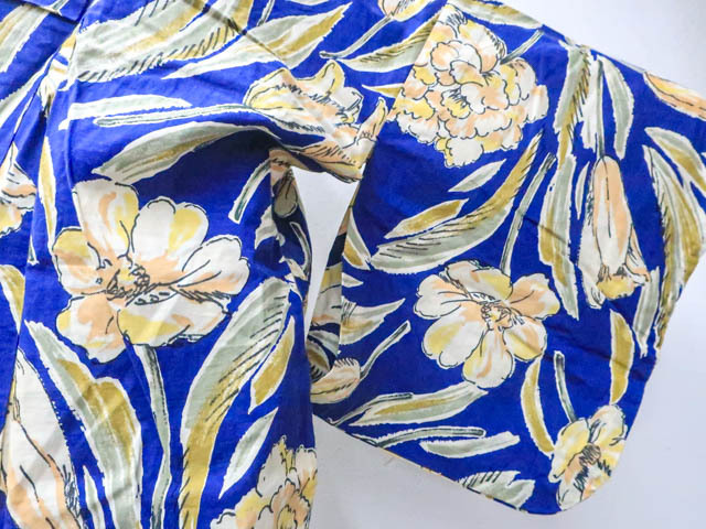 リサイクル商品のため、少ししわと使用感がございますがご着用いただけると存じます。 肩当・居敷当て付でございます。 地色は 青です。 1枚目の画像が近いお色かと思われます。 素材は綿です。 |