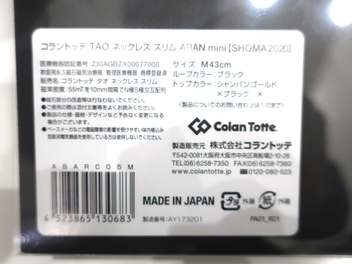 ◆美品◆コラントッテ TAO ネックレス スリム ARAN mini【SHOMA2020】Mサイズ 箱/取説 宇野昌磨選手オリジナルモデル