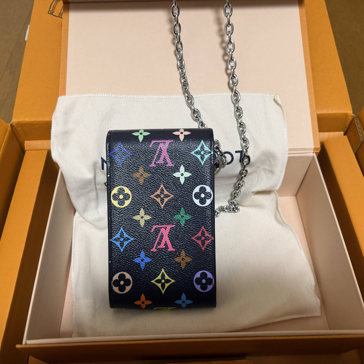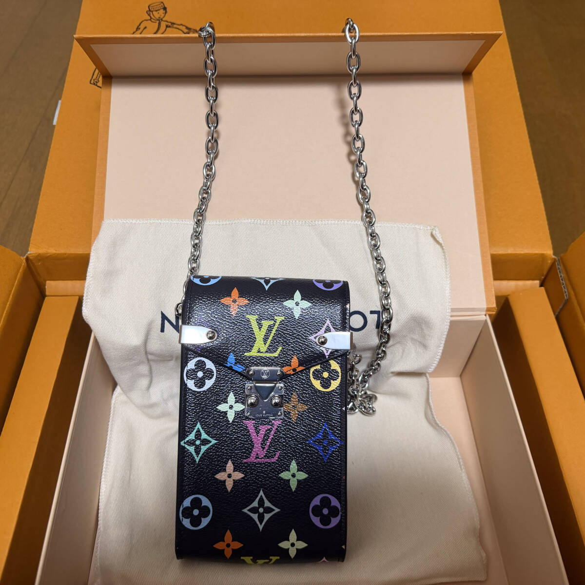 新品 村上隆 × モノグラム フォン ポーチ・メティス M14098 (マルチカラー)※シルバーチェーン付き