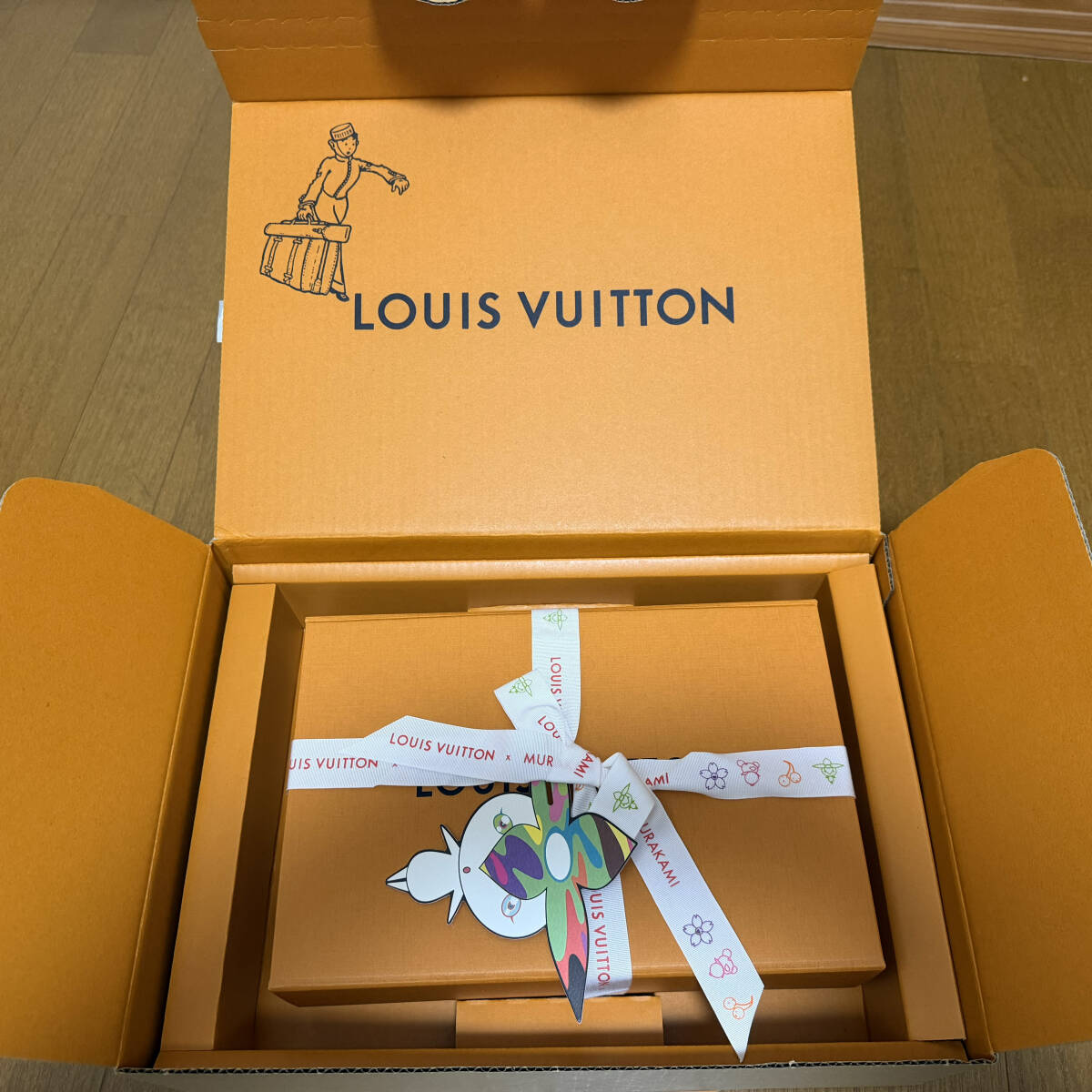 その他、購入時について来た「特製紙袋」「LV専用段ボール」「村上隆リボン&オーナメント」などすべて付けます。