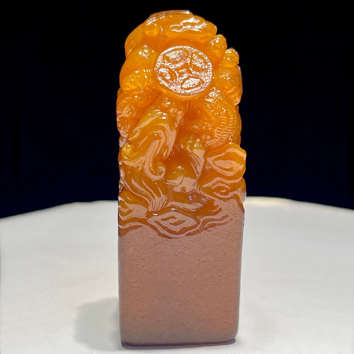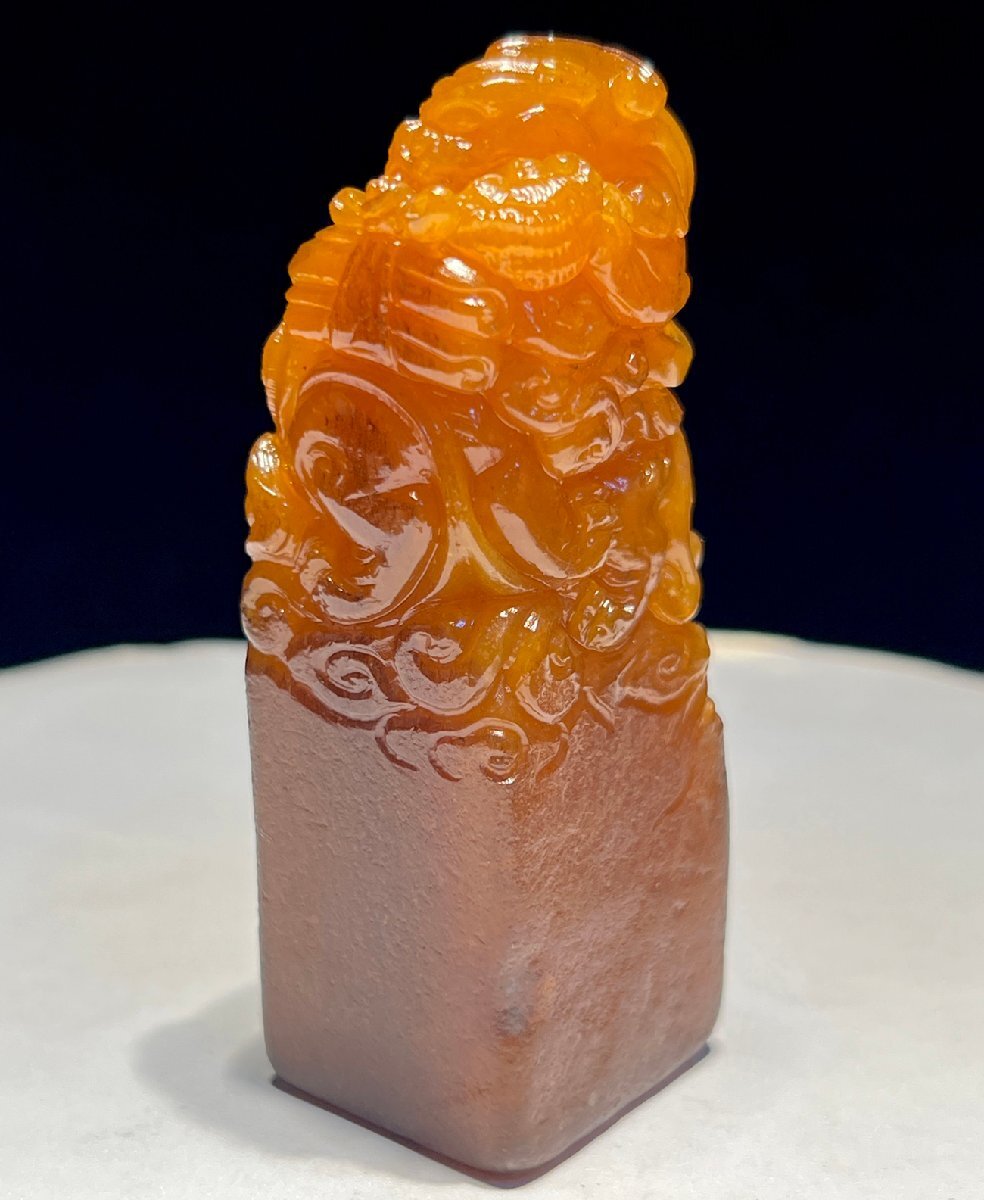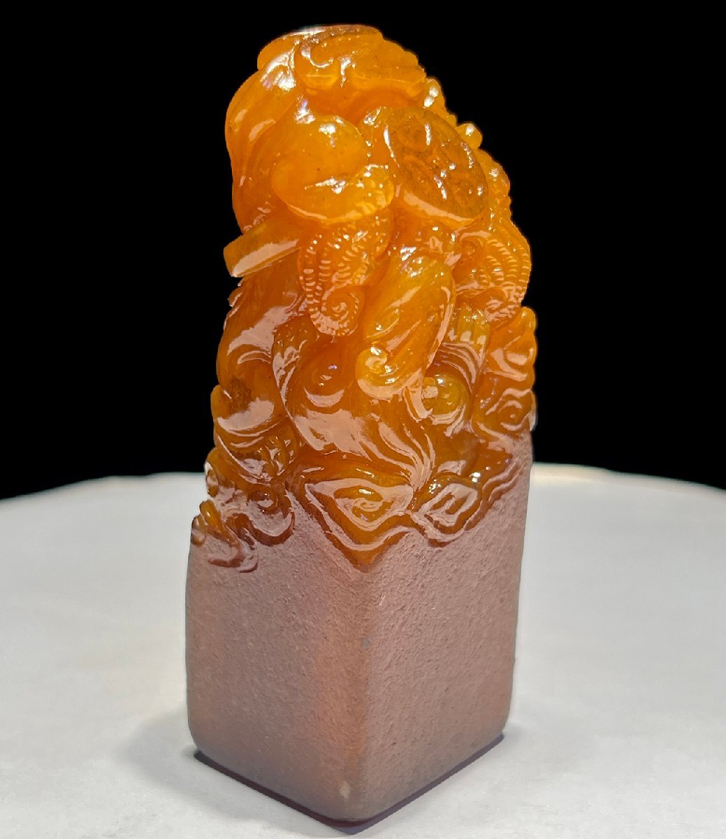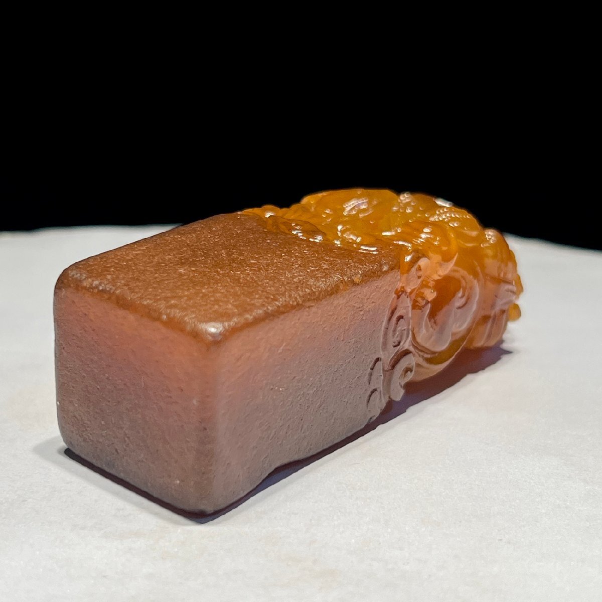 【安】清時代 寿山田黄石彫 魑琥穿環鈕素章 印材 共箱 極細工 古置物 古擺件 中国古美術 時代物 405 サイズ(約寸) |