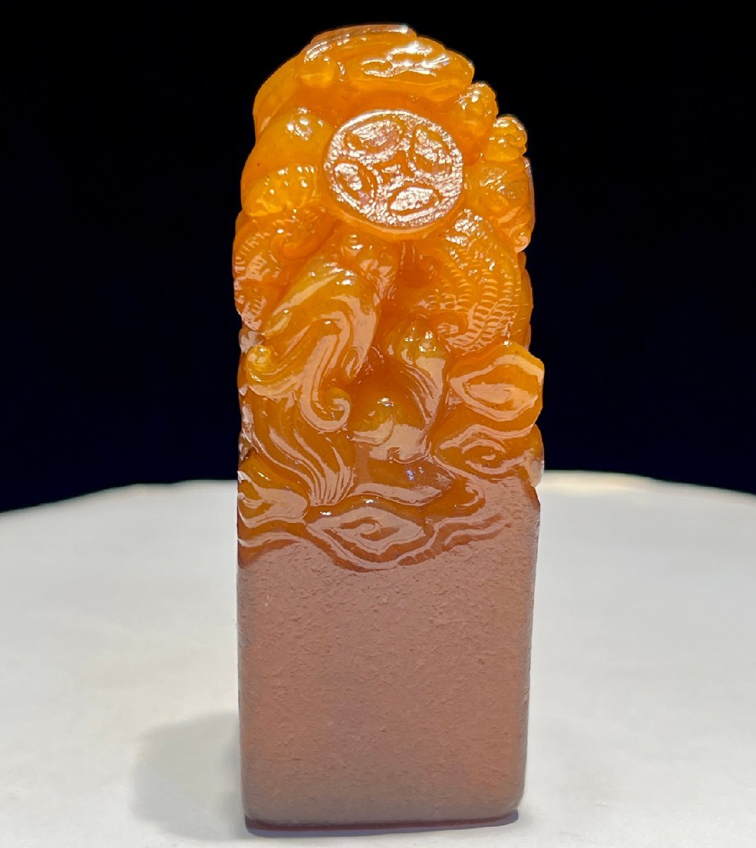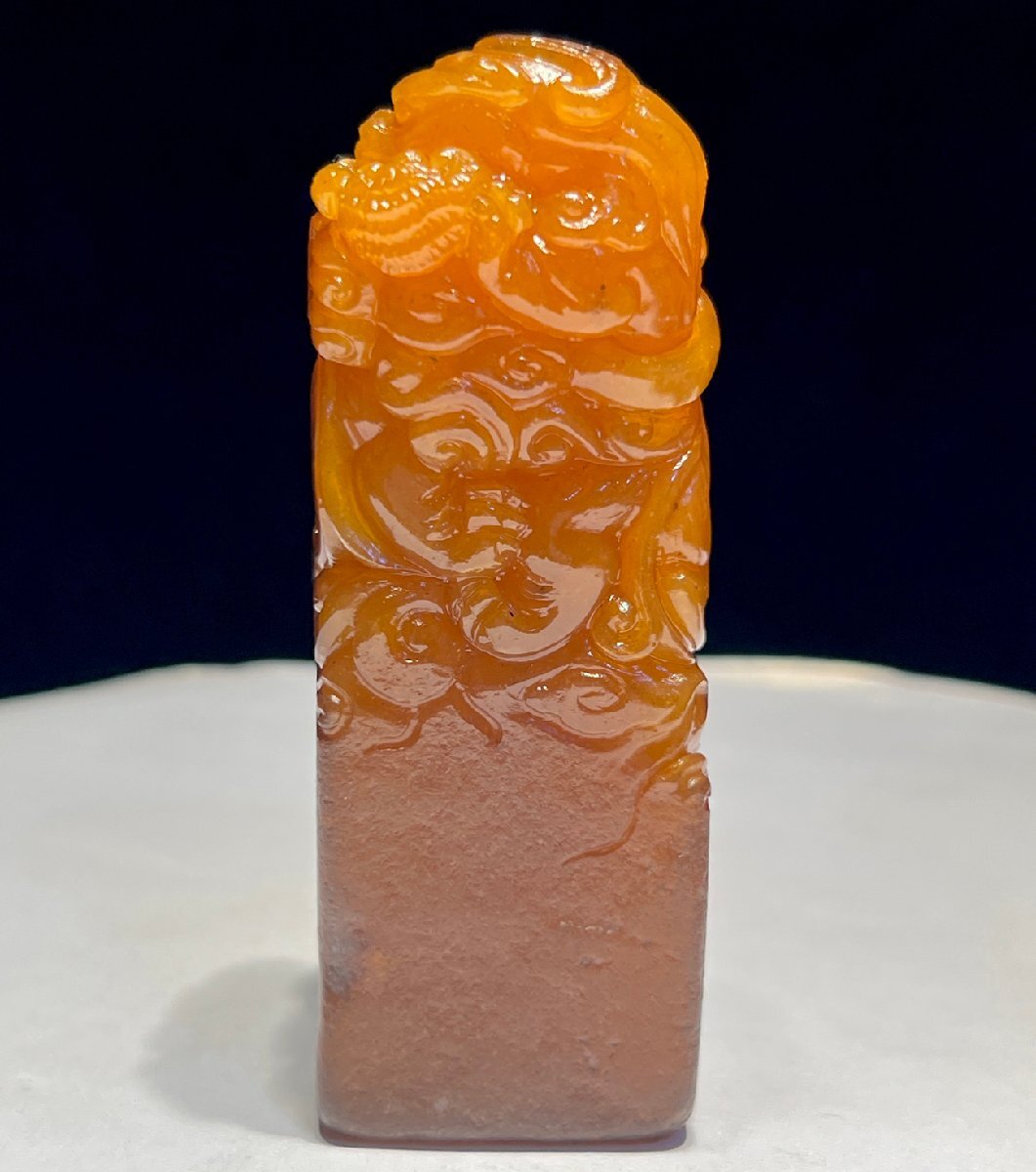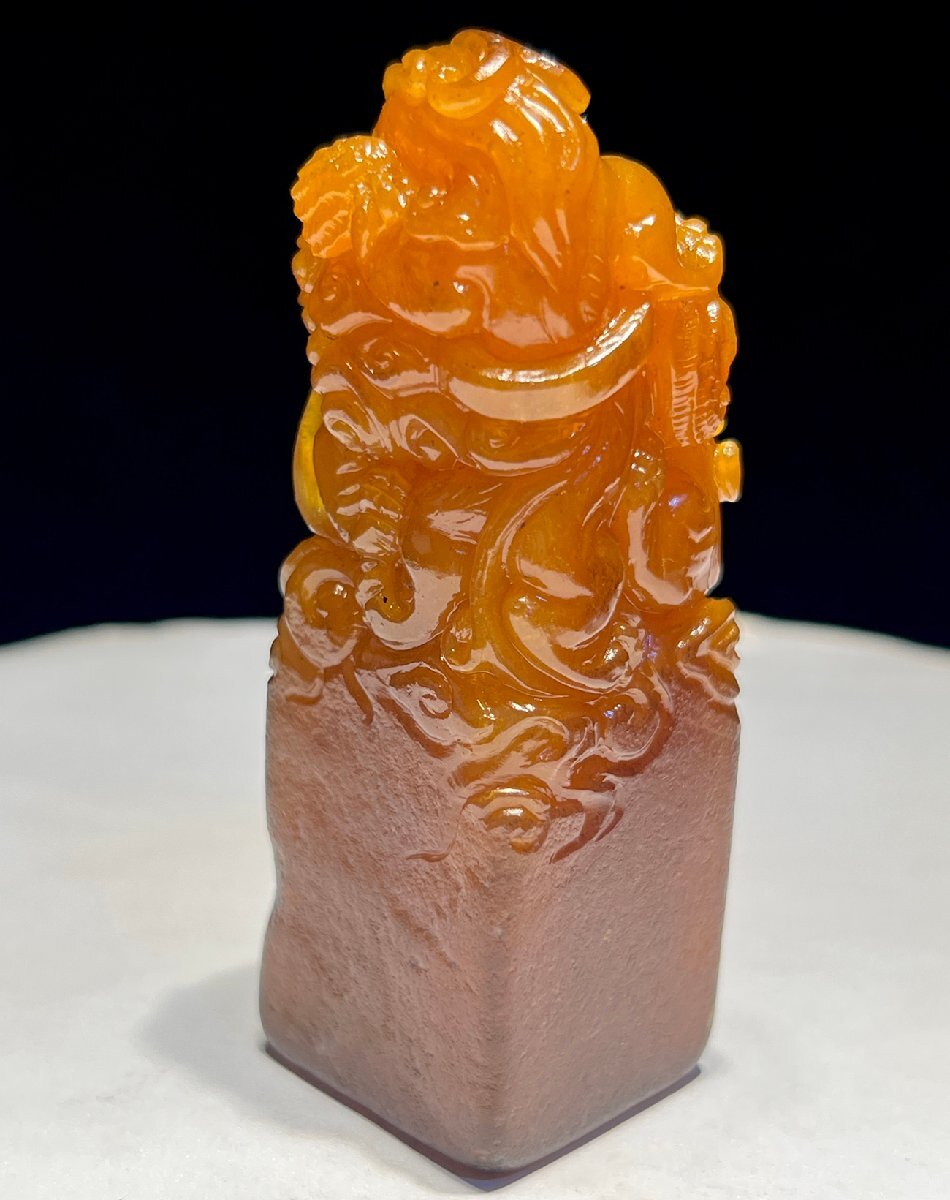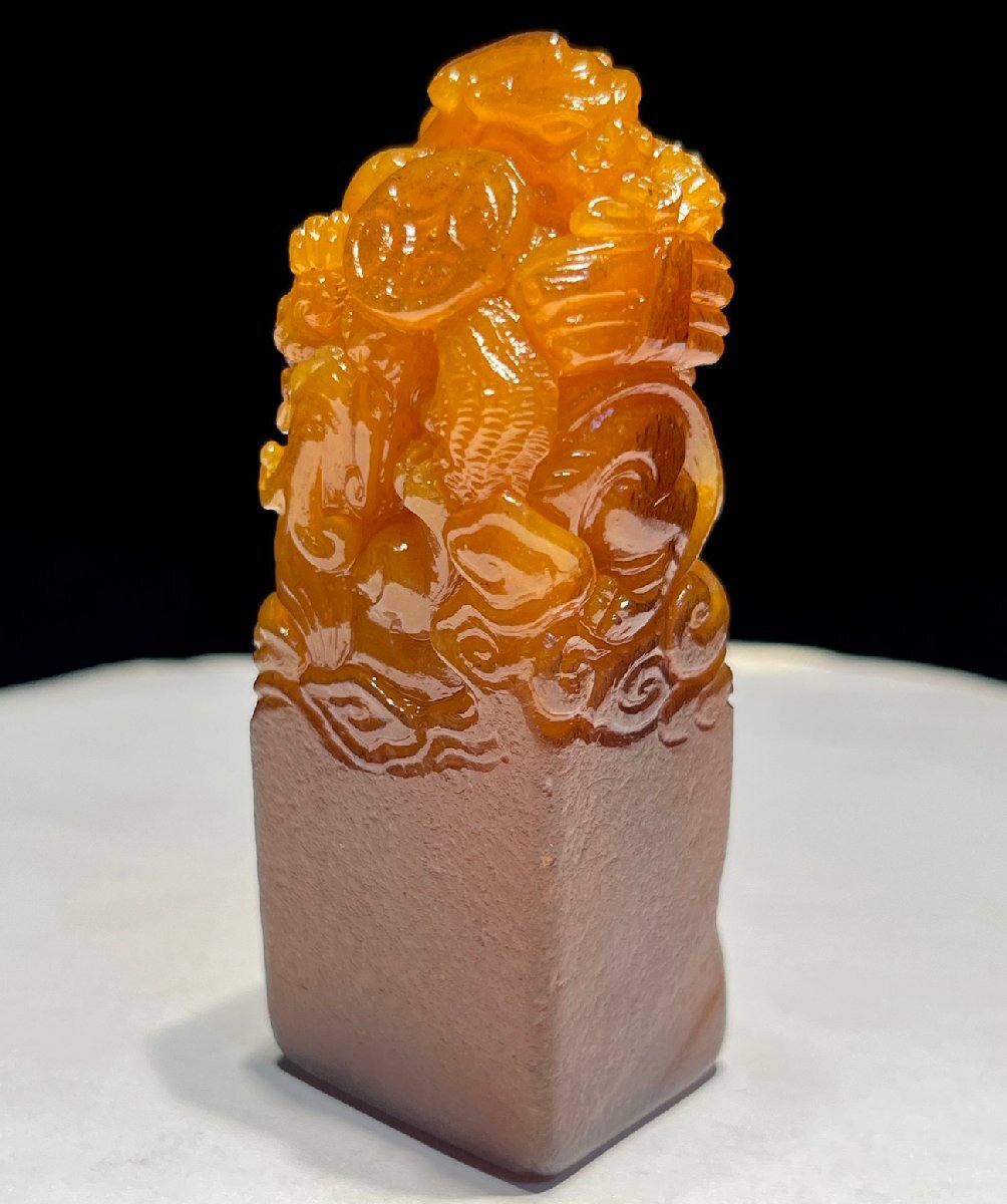 【安】清時代 寿山田黄石彫 魑琥穿環鈕素章 印材 共箱 極細工 古置物 古擺件 中国古美術 時代物 405 サイズ(約寸) |