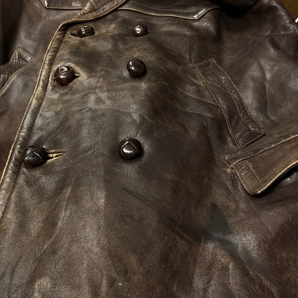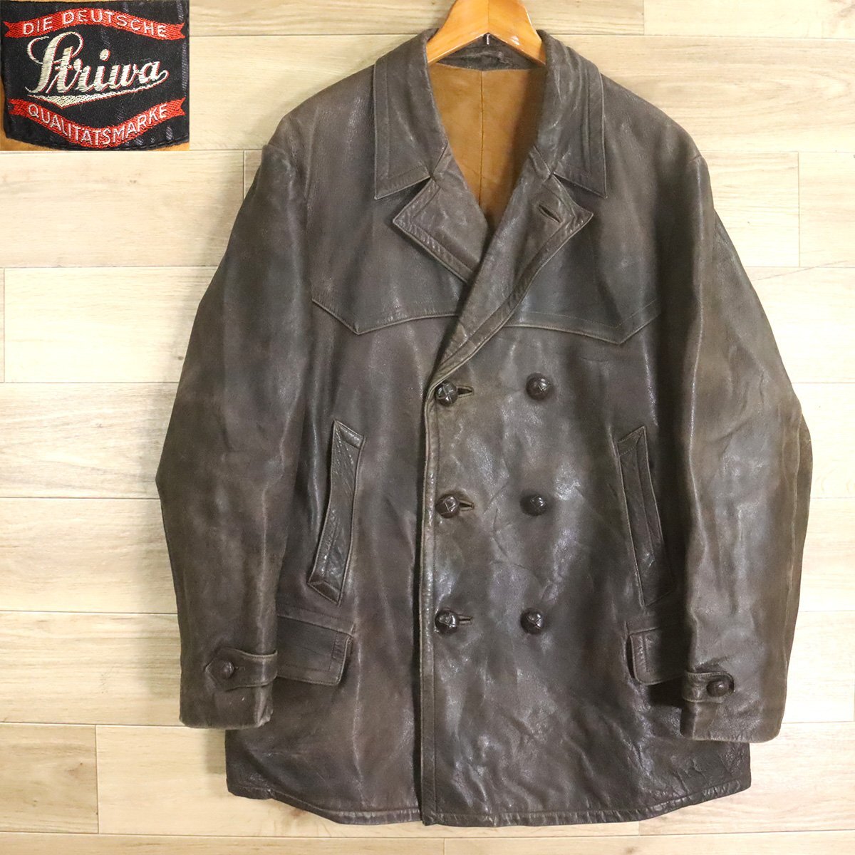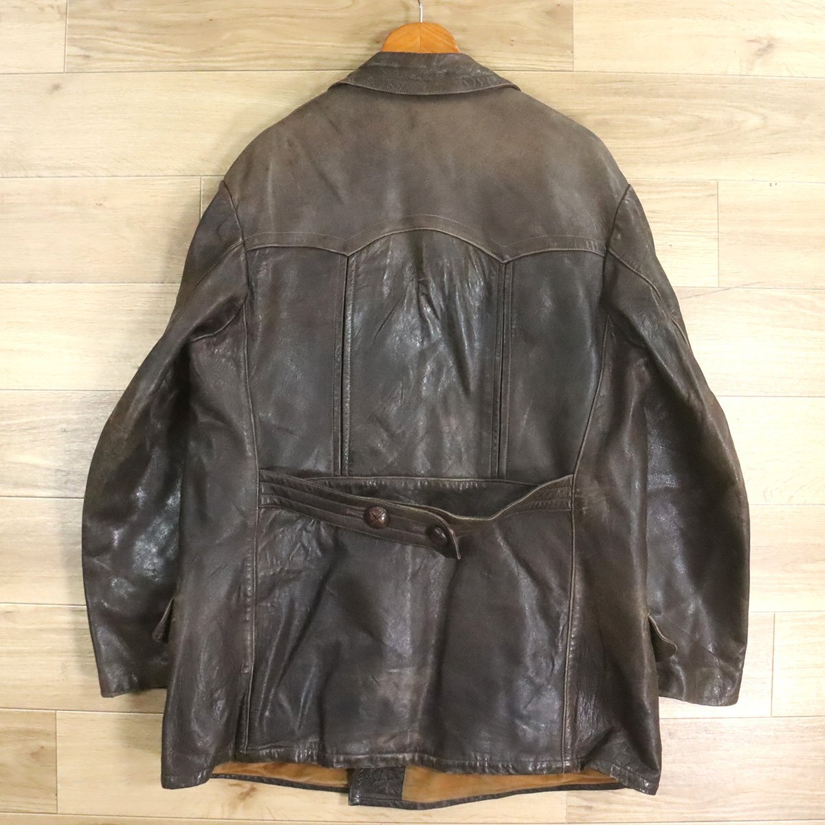*11K/D12.5-6 ユーロヴィンテージ レザーカーコート 本革 レザーコート レザージャケット ダブルブレスト 革ジャン 皮ジャン