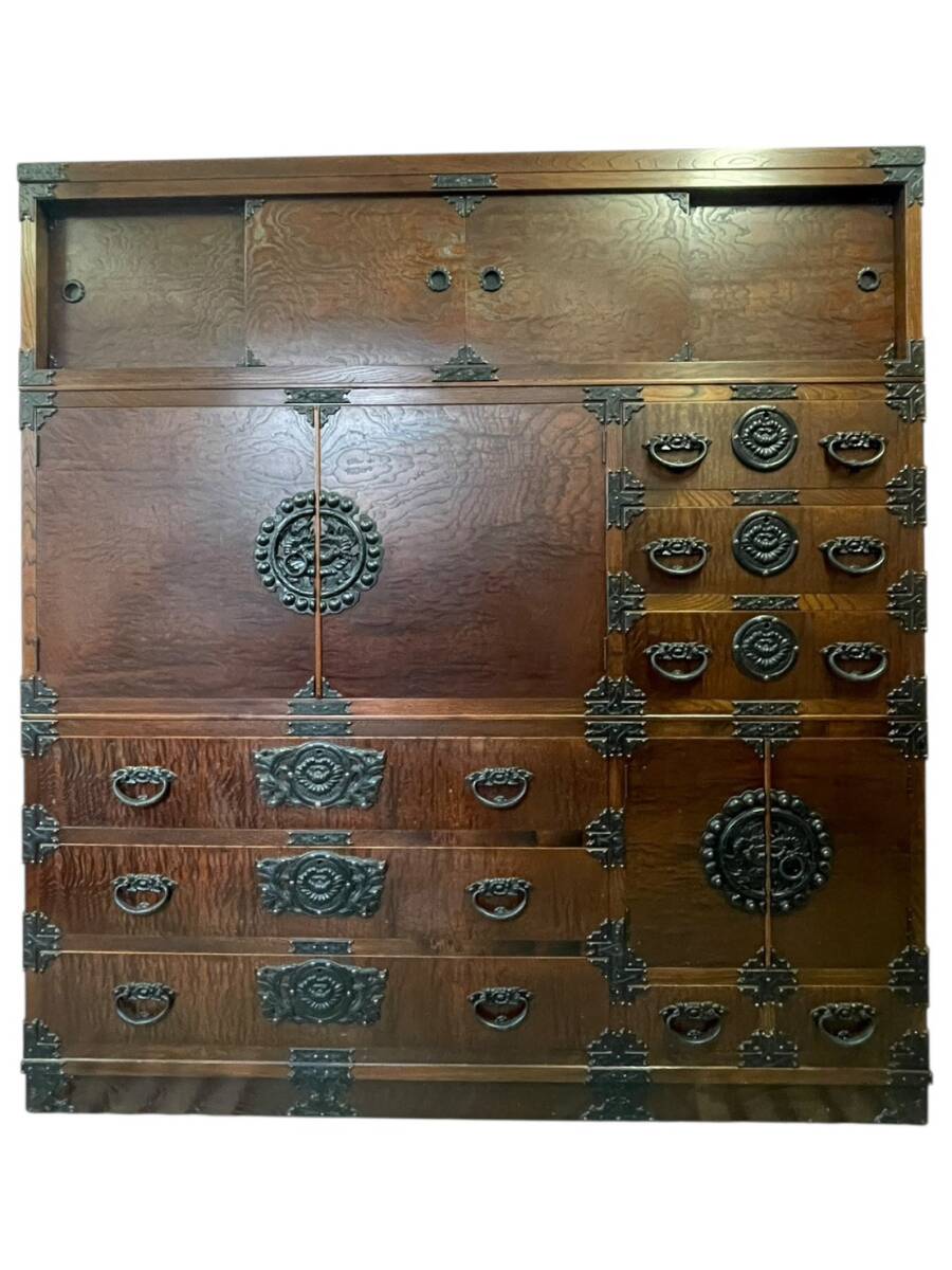 JS334 工芸箪笥 和箪笥 金具 岩谷堂系 希少 高級箪笥 高さ178cm 横167cm 奥行45cm 3段分割 群馬県内送料無料