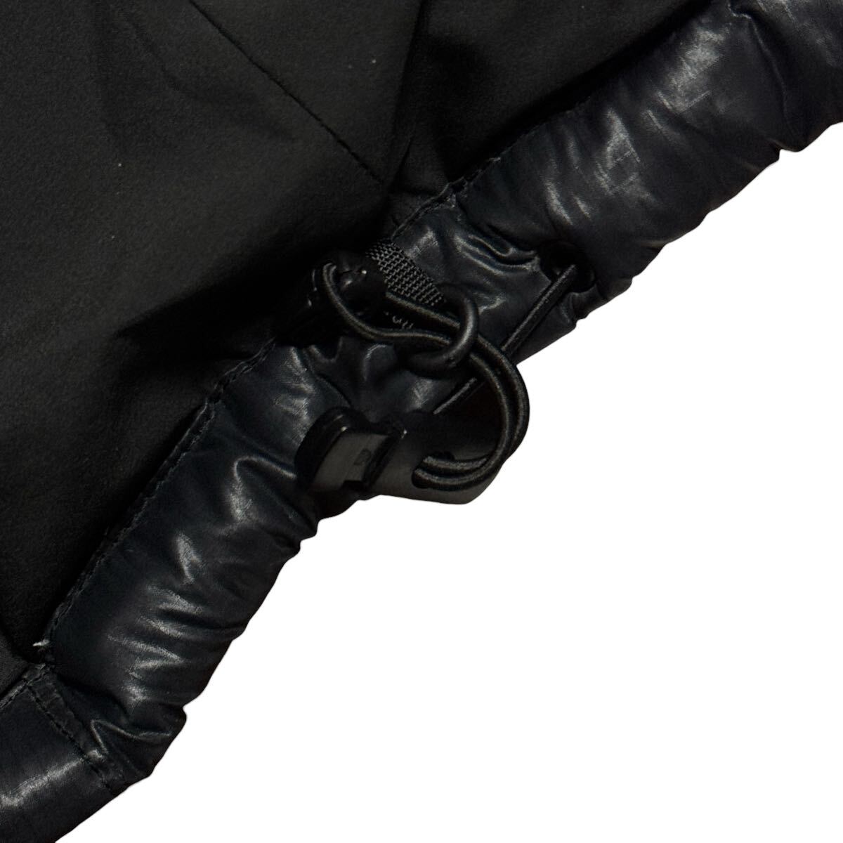 フロントの斜めジップポケット、裾のドローコード、ブランドロゴ入りパーツなど細かいディテールも魅力。